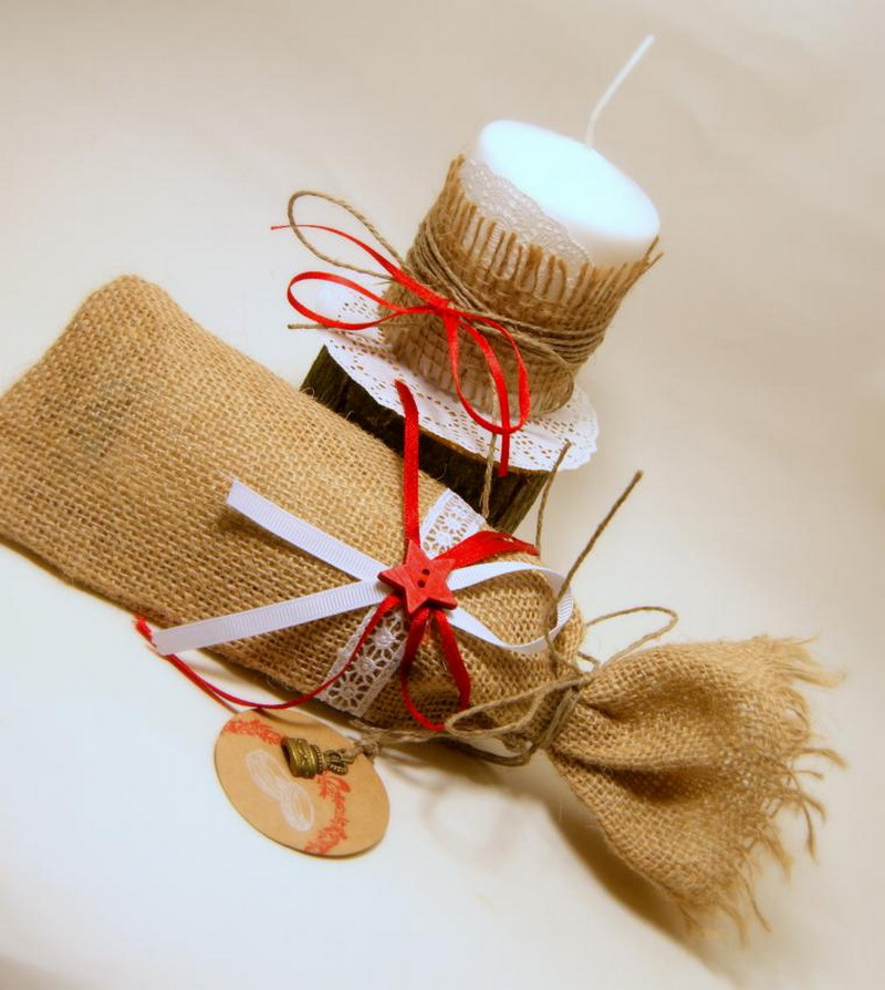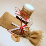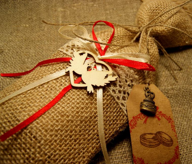 You can make them from ordinary scrap materials. Take vintage postcards as a base. On them, make a soulful text, while not be afraid to show emotions, because the guests will certainly appreciate your efforts. A regular paper envelope can be replaced with a burlap bag, in addition to a postcard, putting a little surprise there. For example, plant seeds, chocolate, flowers. They will set up a guest person on the theme of the holiday.