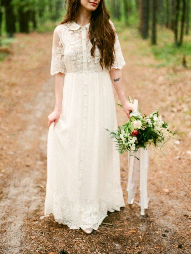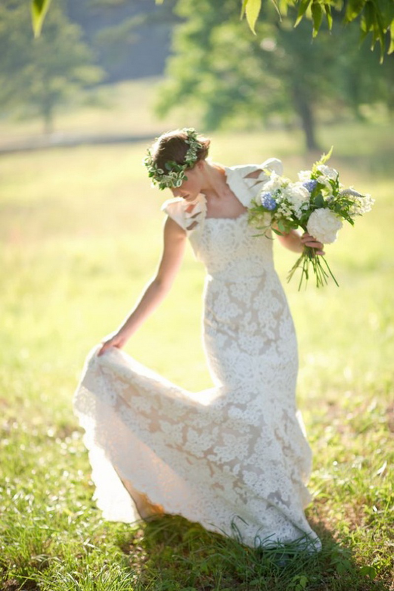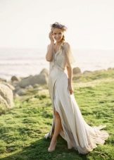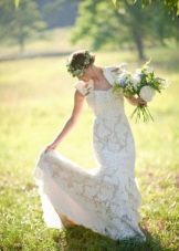 Of course, any bride wants to shine on such an important day for her. However, do not forget to adhere to style. For a rustic wedding, choose a calico sundress or a dress in Greek style. The dress with an open back will look gorgeous. It is better to pick up colors gentle, pastel: beige, cream, white, an ivory. The main thing in the dress is flowing fabric, which will convey the gentle image of the bride. You can use silk or chiffon.
