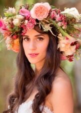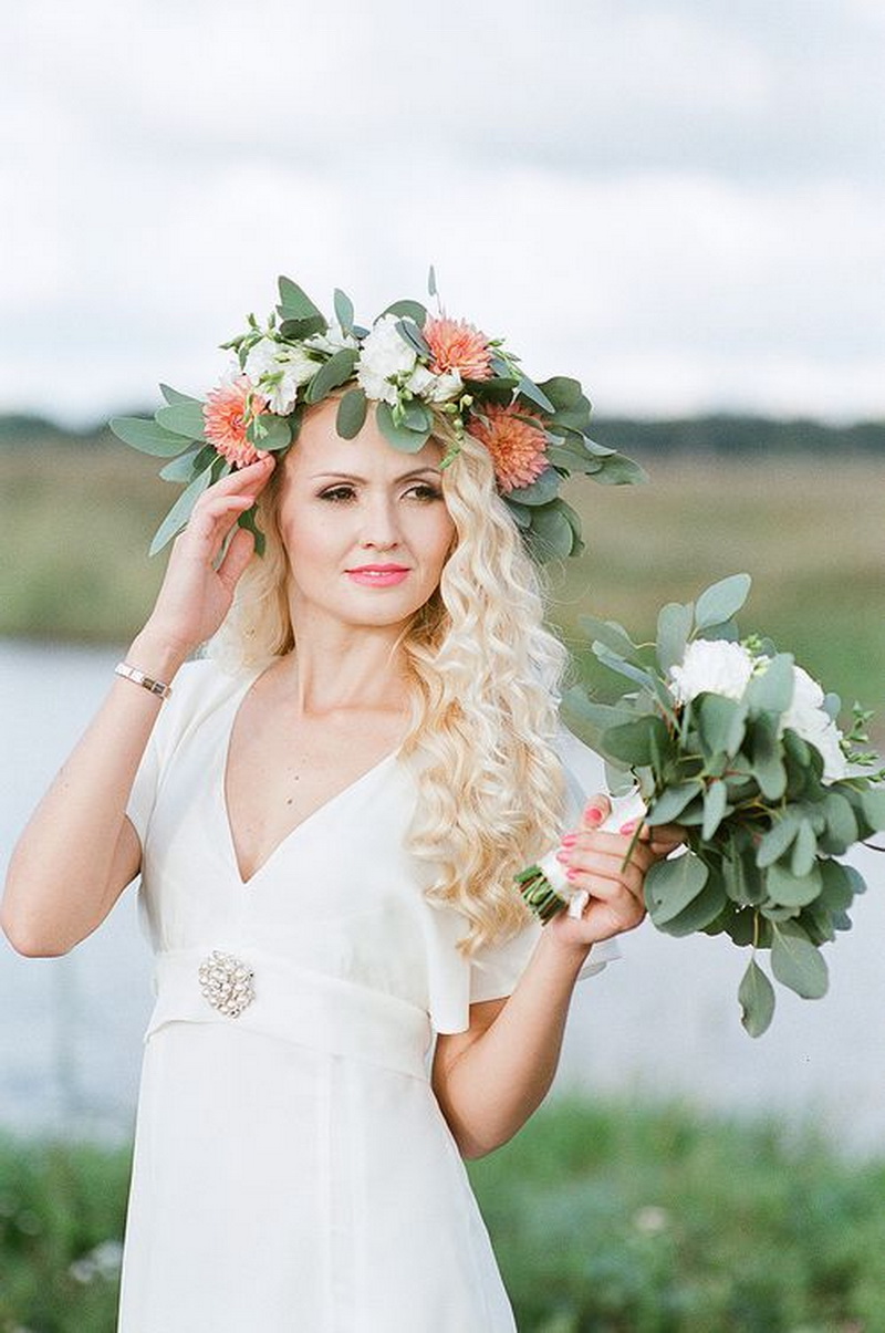 - Rustic style is unthinkable without wildflowers, trees. Elements can be applied both in a decor, and in clothes and a hairdress.