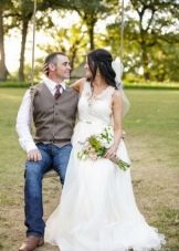 - Relevant to the direction of cowboy boots and suspenders. It is good if the groom chooses such stylish and suitable clothes.