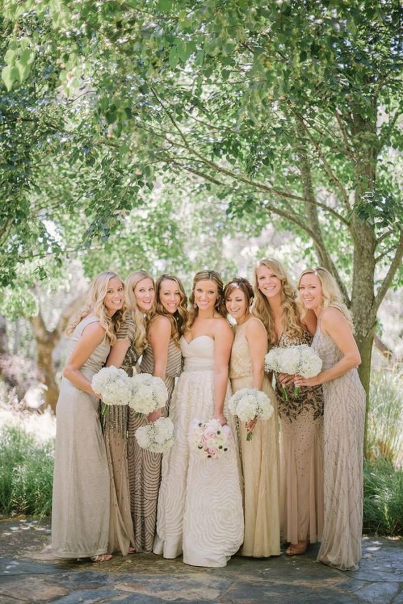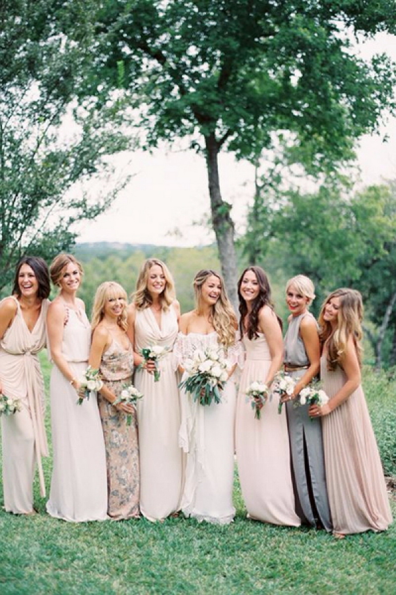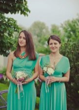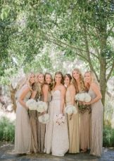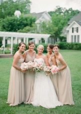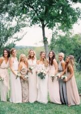 Friends newlyweds also want to dress stylishly. Here it is important to take into account all the accessories that will help to organically fit into the style of each participant of the holiday. For example, bridesmaids can choose long skirts or short sundresses. It is important that in their texture they are light and flowing. For example, you should give preference to chiffon. You can use delicate beige, milky, green tones. The main thing - do not choose the white color, as well as the tone, which will be the bride.