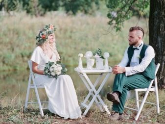 Note that the "rustic" style is more of a Jewish type of celebration. It is not customary to buy the bride, however, it is not prohibited to do it. According to tradition, the morning of the most important day for the bride and groom begins separately. Each of them carefully prepares for the celebration, conducts a photo session of fees. After that, the groom goes for the bride, they get in the car and go to the registration together. You can also go separately, as in Europe. After the newlyweds exchanged rings, they go to a photo shoot at the chosen place. And then a banquet awaits the guests.