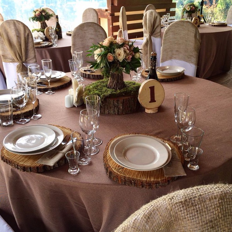 - Chairs. It is worth noting that metal and plastic in this style should not be used. It is better to give preference to natural wood. These chairs can be beautifully decorated with burlap, and a small bow at the back. Allowed to use the usual shops. Rustic style involves a lot of guests, which means they should all be accommodated at the table.