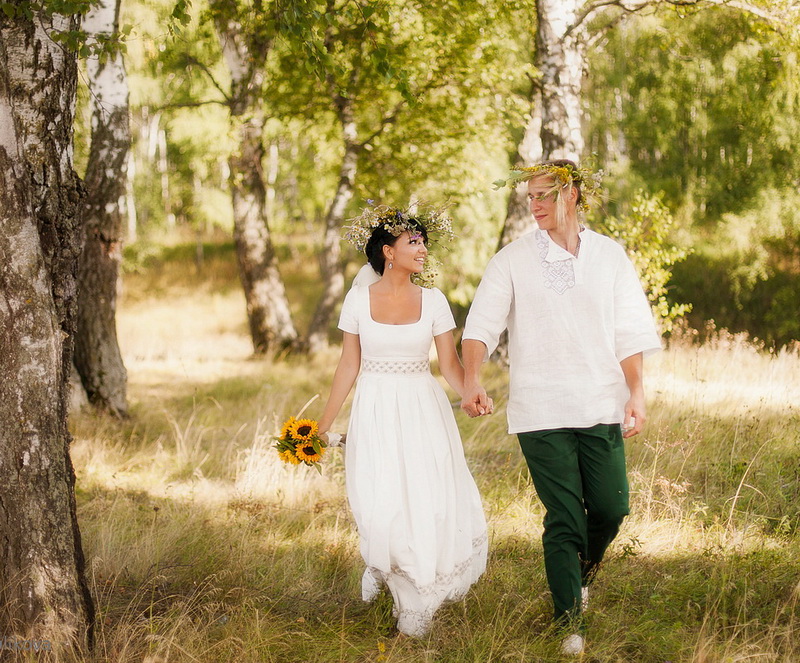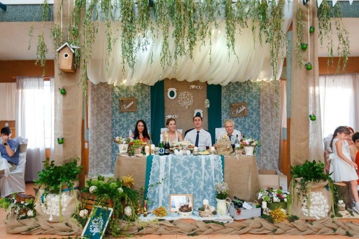 The peculiarities of this style include not only its simplicity and beauty, but also its economy. If you want to arrange a budget wedding, then definitely it is worth choosing this option. As for the fabric, then you should not stop at the brilliant options. Tinsel on the background of natural elements will look rather inappropriate.
