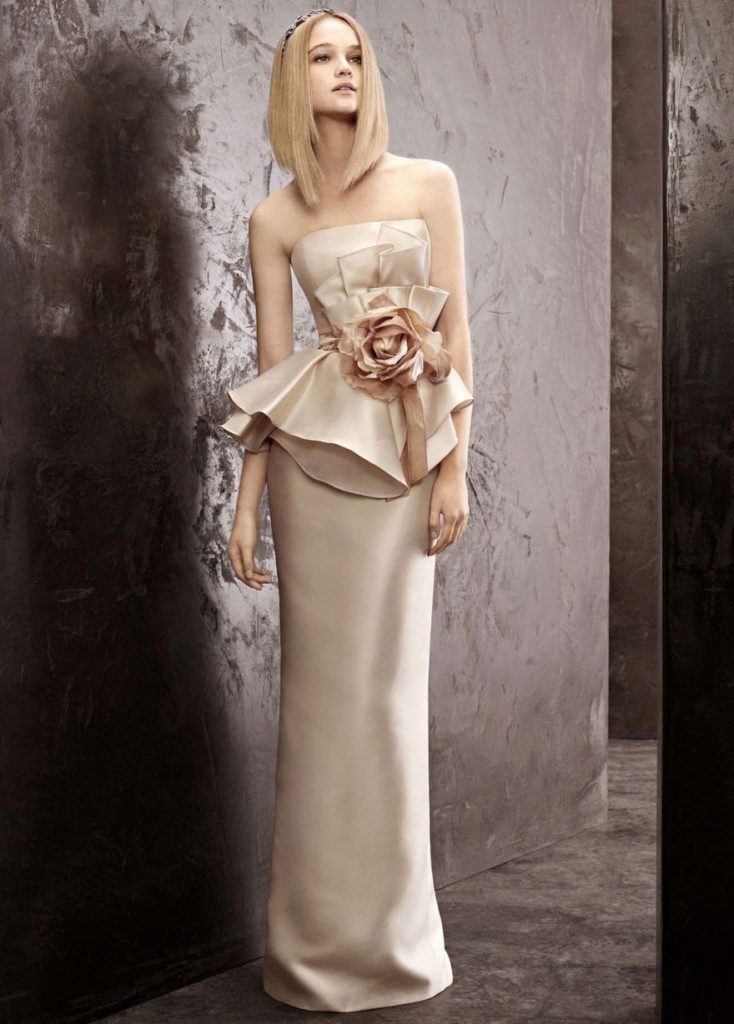 The case provides the creation of an exquisite, but not too elaborate, defiant image. It is suitable for those who wish to hold a wedding ceremony. Indeed, in the church the bride should look as modest as possible. Straight cut it will provide, but it will not deprive femininity and tenderness, even if an immodest neckline cover the bolero.