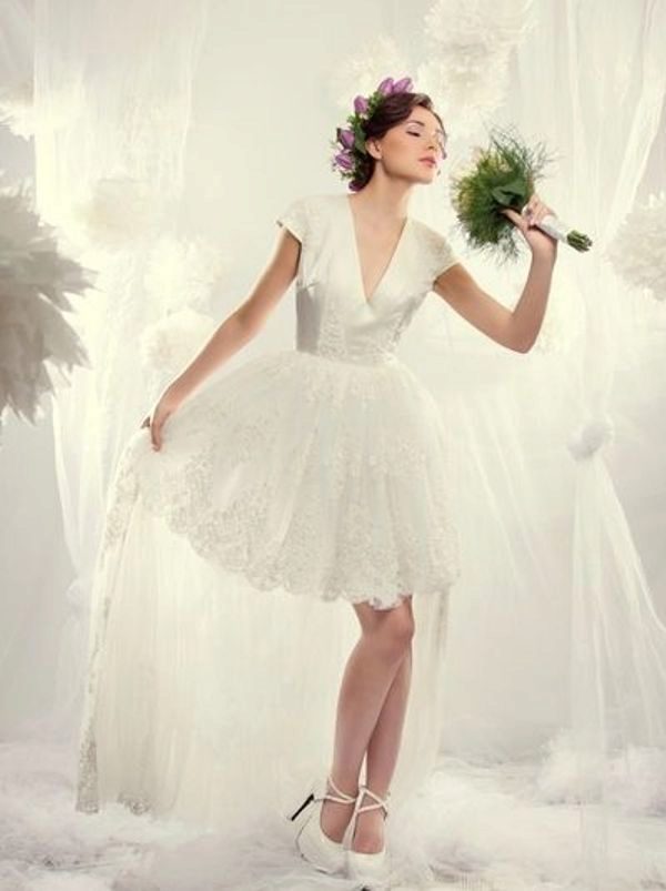 Of course, the essential attribute is shoes. Low girls should prefer high heels. Just remember, it should not be to the detriment of your comfort. Whatever one may say, a wedding is a long celebration and you have to move a lot. Heels to run all day long on heels are not the best thing to do on your own wedding day. A great option is to buy a high heel for official events in the registry office and the church, and then change into a lower platform, being already in a restaurant. But again, this applies to low brides.