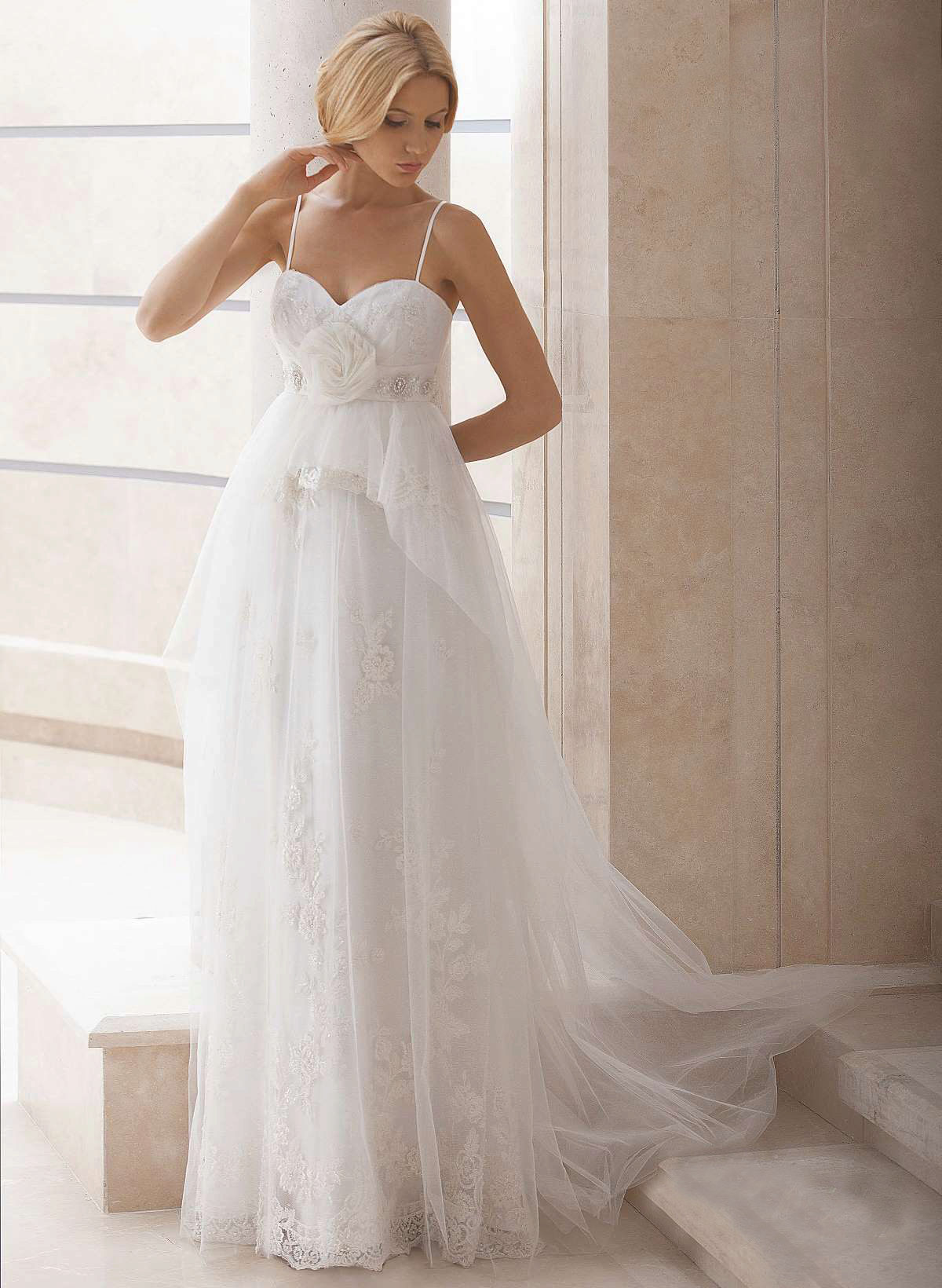 Estel collection is dedicated to lace. It is present in the A-silhouette, lush dress, year, Empire, and even in short models. Lace - it is, in general, a win-win for wedding dresses, especially in the performance of Lady White. There are even bold models with open lace corsets - you infect everyone around you with your femininity and desire to delight.