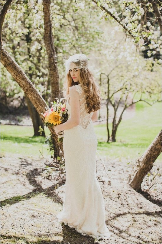 Lace dress does not need lace elements. It is quite another thing, if the lace in the image is not enough, then additional elements in the form of gloves or veils will be appropriate.