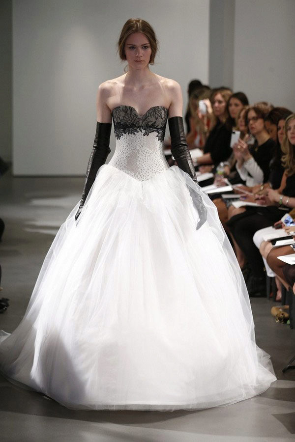 The white dress came into vogue half a century ago, when the girl camp emphasized the corset, and the beautiful legs hid behind the magnificent skirt. Now the classic magnificent wedding dress corresponds to the old canons: the corset is richly decorated with all possible materials, and the skirt is sewed to the best of the lush with rings.
