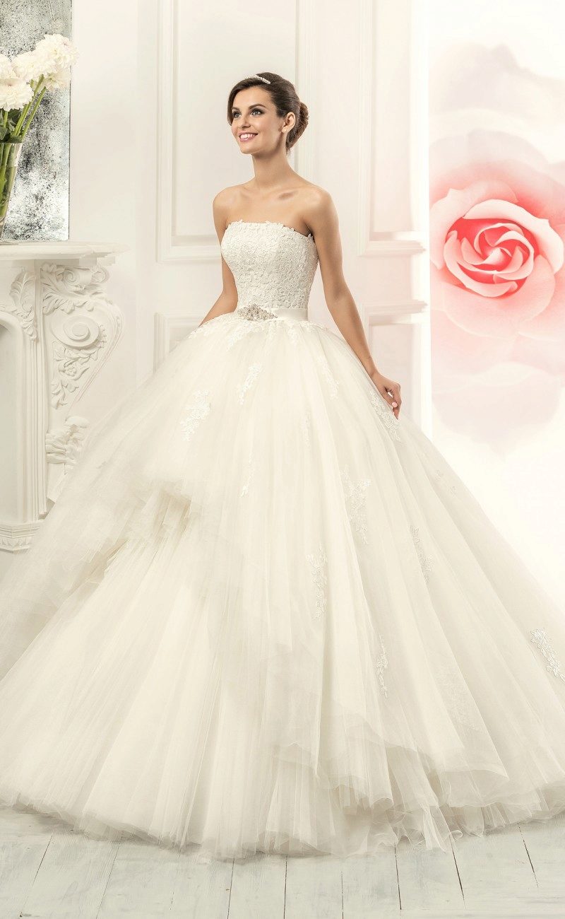 Every year, ballroom models are updated and amaze with the variability of the shape and multi-layer skirt, lace elements.
