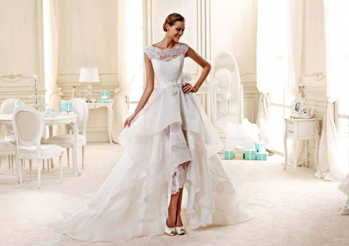 A short dress in snow-white color is created for pretty girls, owners of chiseled figures and perfect legs. For a summer wedding, it is a sin not to choose just such an outfit that doesn’t want to go out of fashion, being a symbol of cute impudence and innocent playfulness.