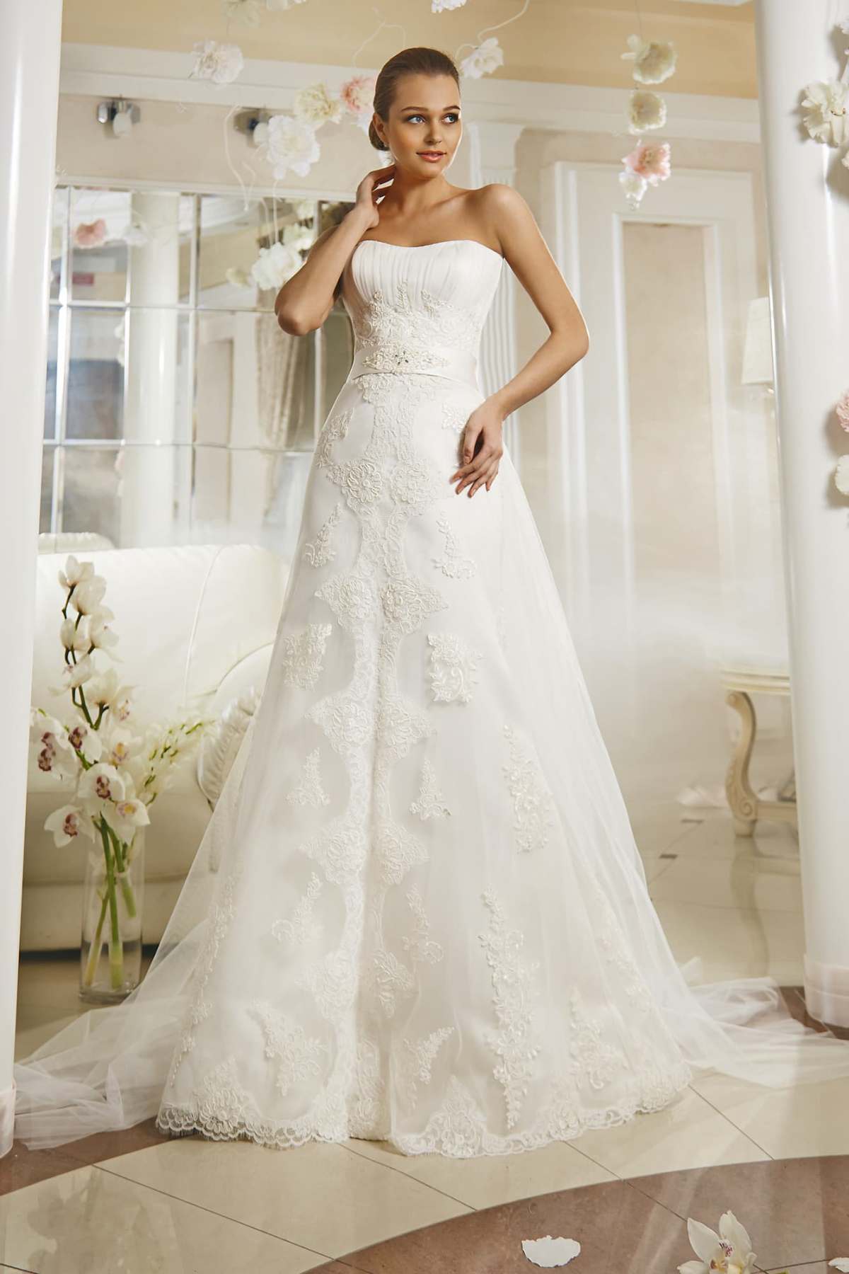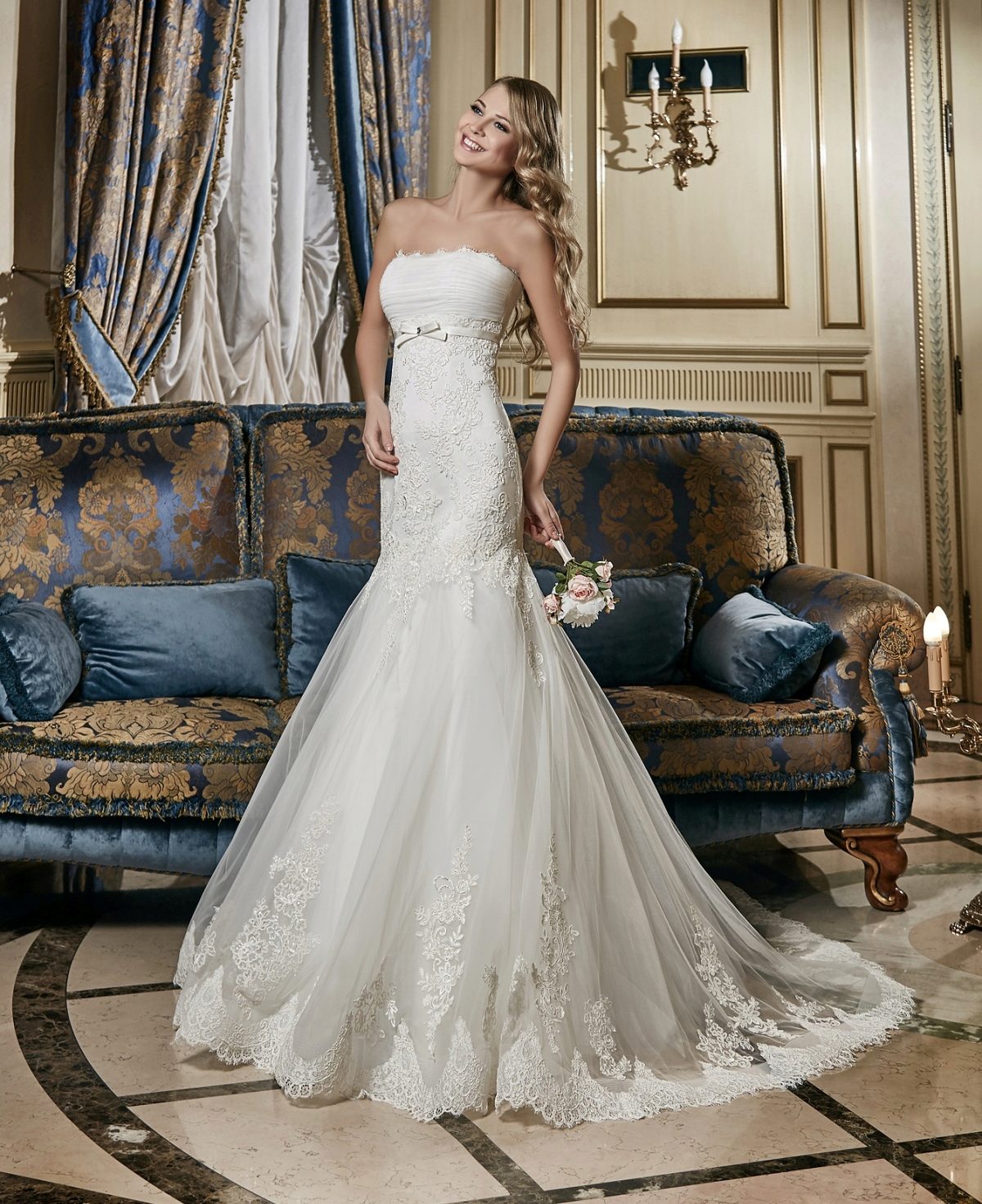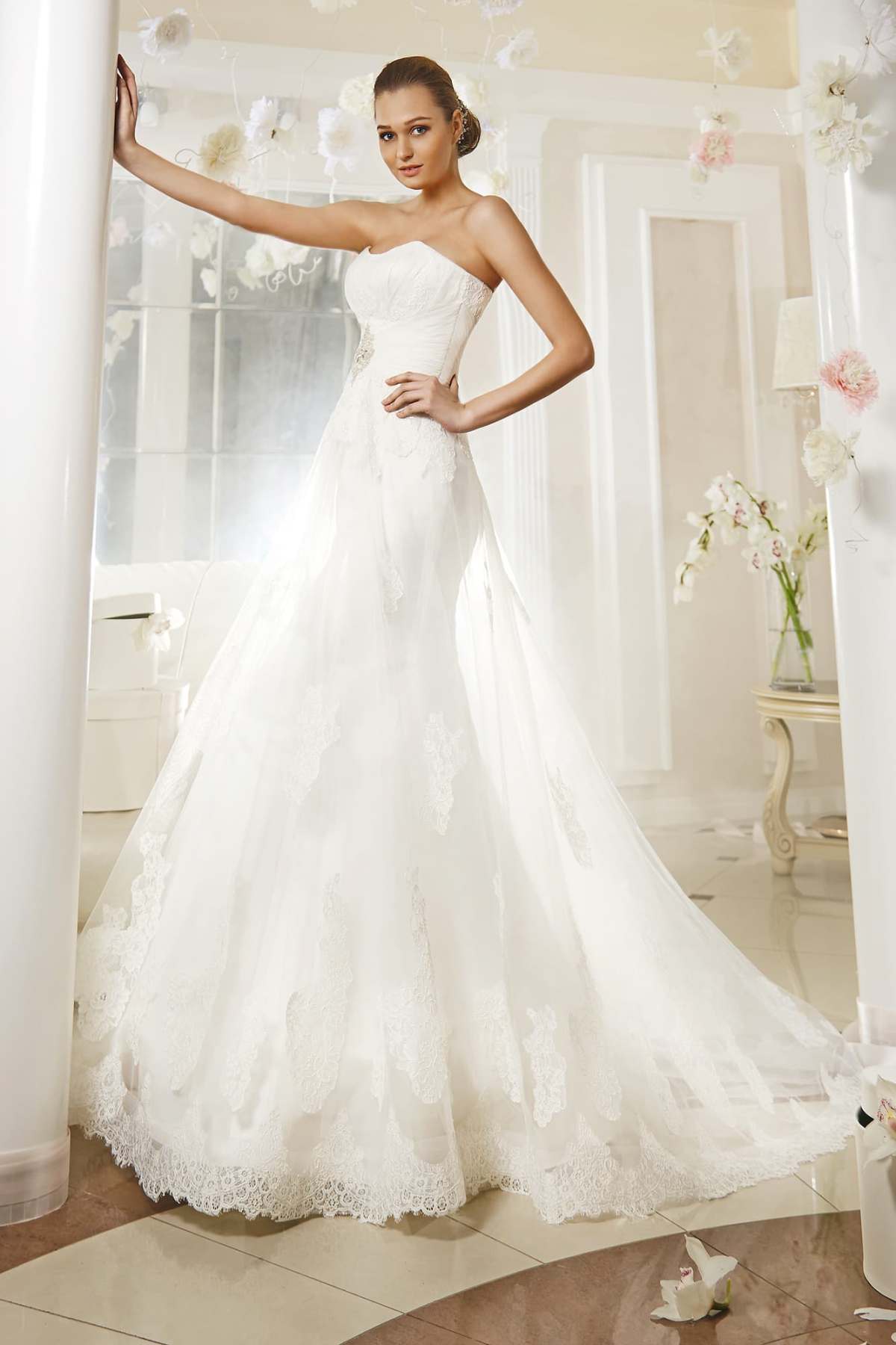 As part of this collection are only long dresses. And in other collections you will not find them. Dresses are made in the styles of "princess", A-silhouette and a mermaid.