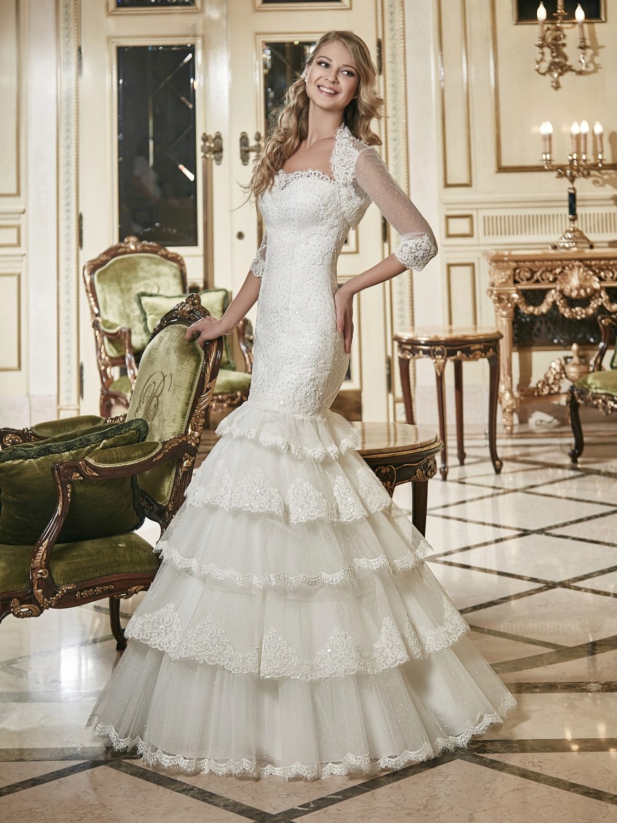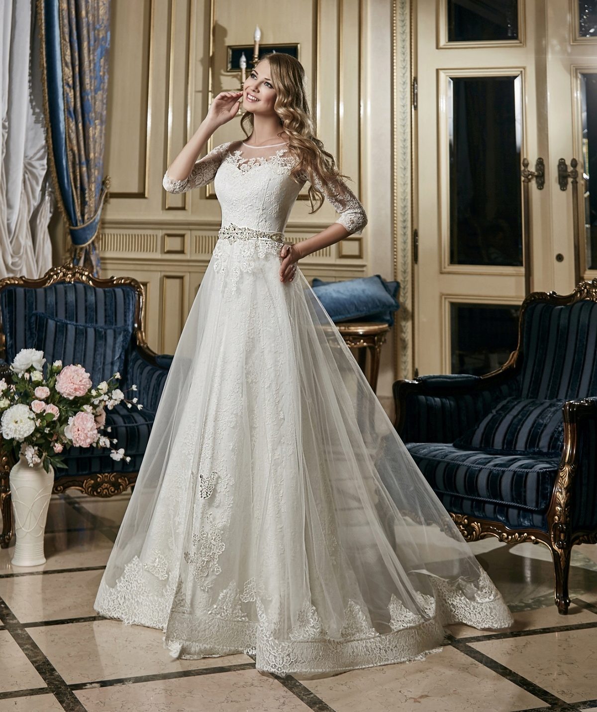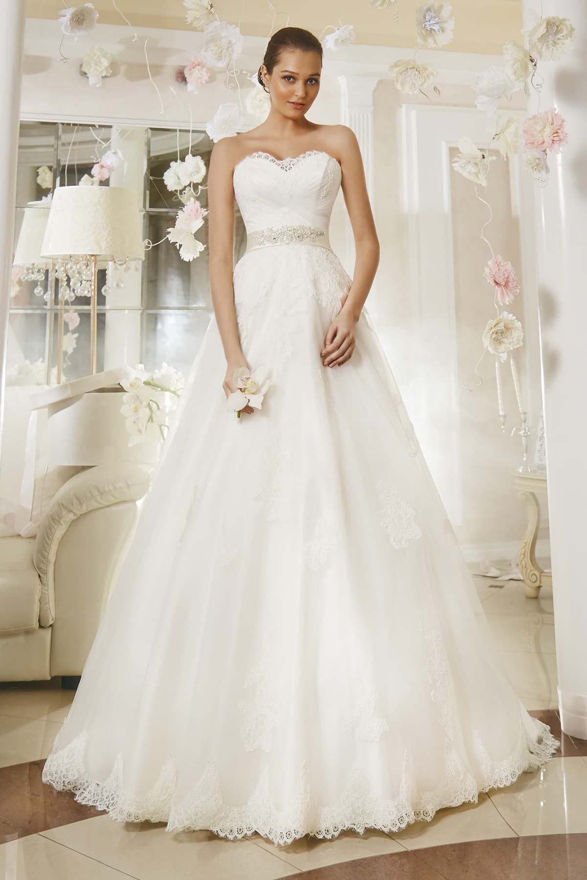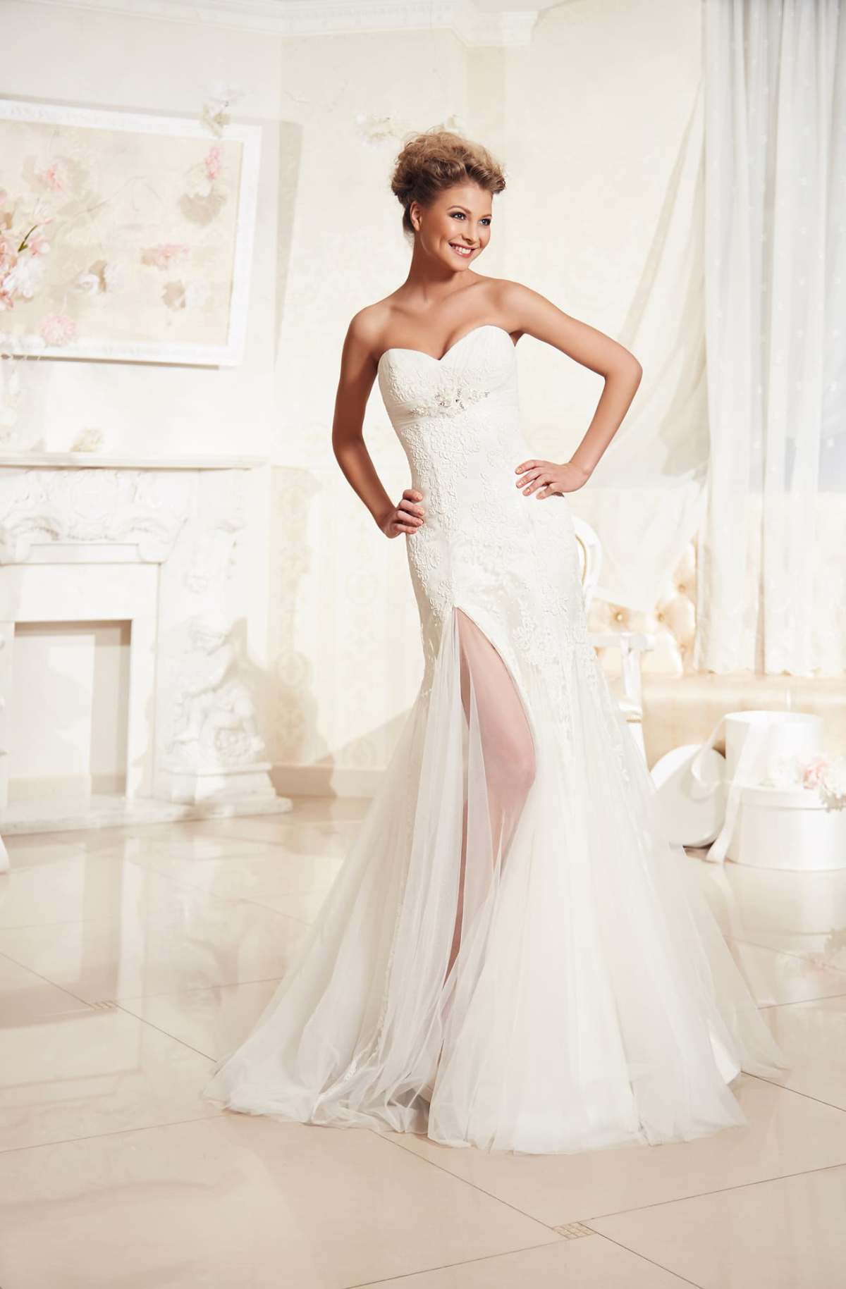 As part of this collection are only long dresses. And in other collections you will not find them. Dresses are made in the styles of "princess", A-silhouette and a mermaid.
