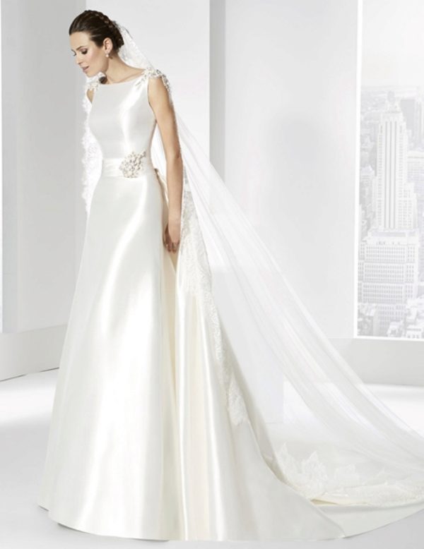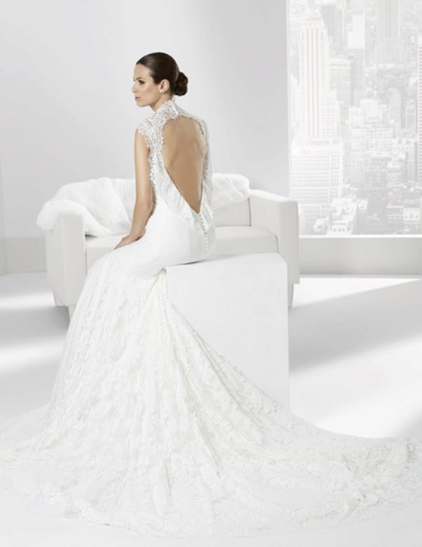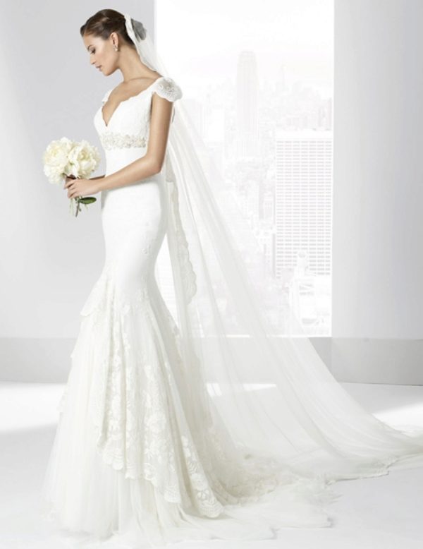 All the models from Franc Sarabia shine with impeccability, in which for the most part long dresses in snow-white color or milky shade predominate. Such simple white outfits with contrasting elements in the form of belts or ribbons become interesting and mysterious. The presence of Chantilly brings with it solemnity, makes the bride romantic and even a little erotic. And all this, mind you, does not contradict the classical traditions.