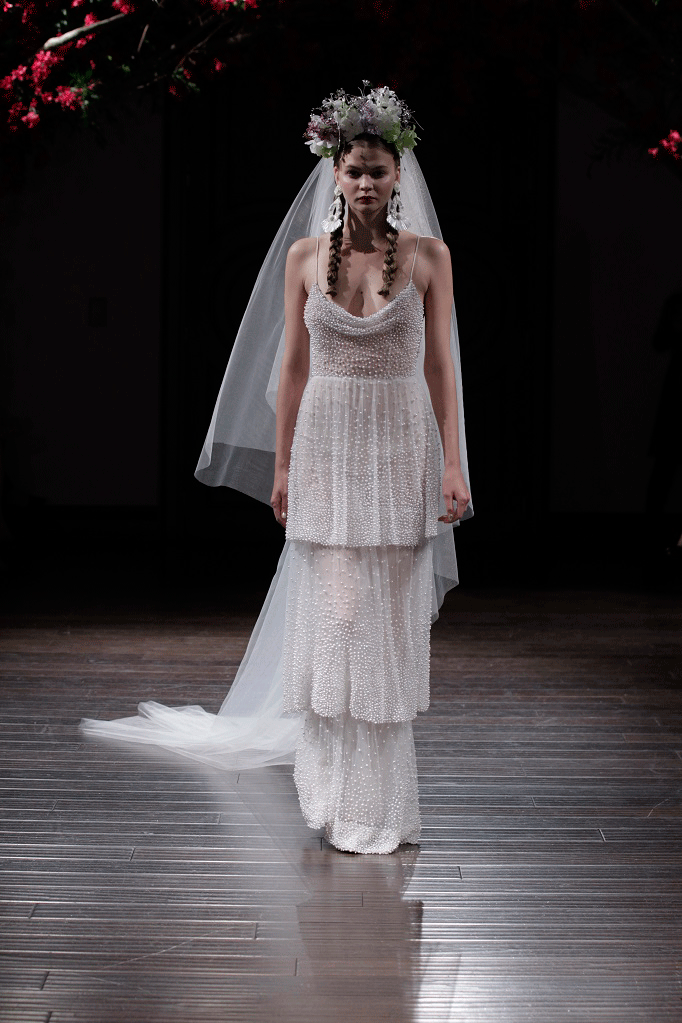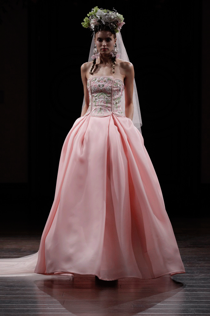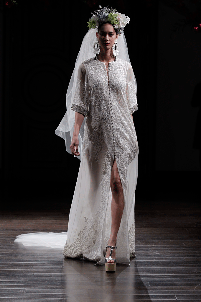 The fashion house Naeem Khan always creates different outfits, thus proving that a wedding dress can carry completely different emotions: tenderness, severity, challenge to tradition.