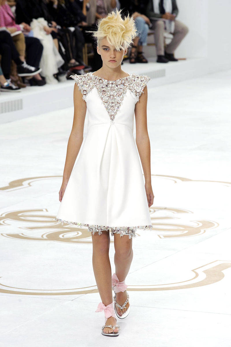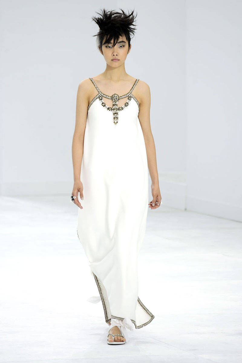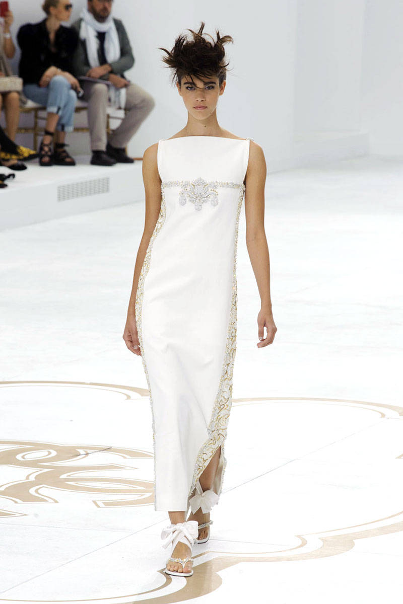 Fashion house Chanel is proud of its creative and courageous designer Karl Lagerfeld. His collection of couture outfits is filled with modern dresses in which baroque notes slip through.