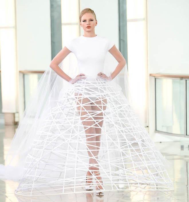 It seems that all these decisions have nothing to do with the tenderness characteristic of wedding dresses, but the designers of the fashion house always manage to combine completely incompatible things. It happened this time.