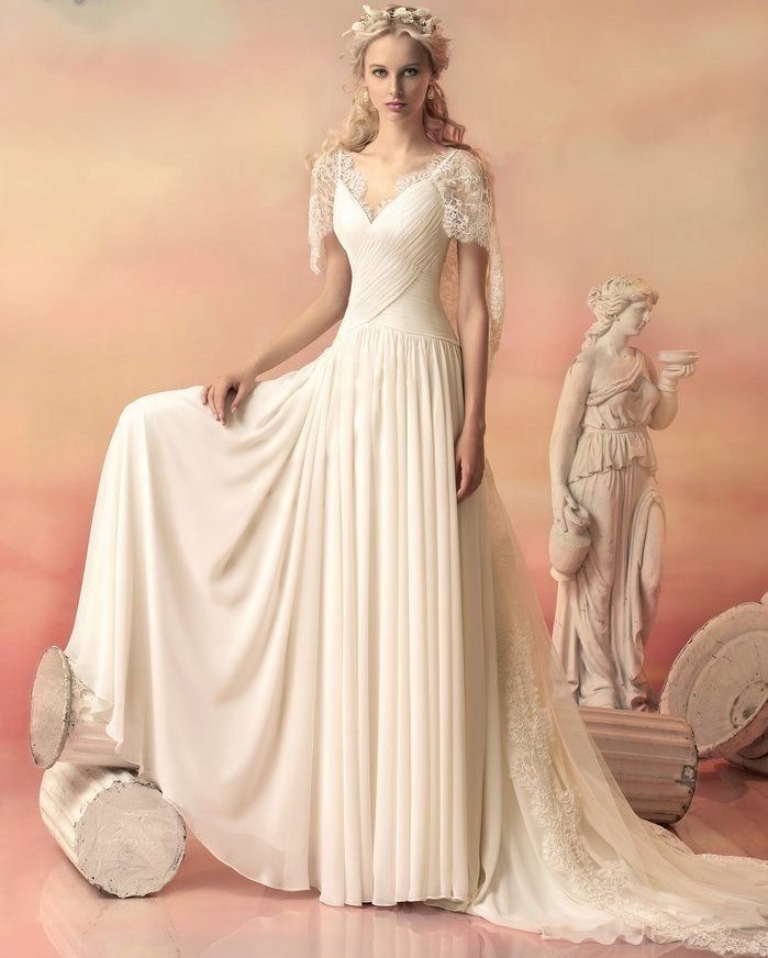 The collection is considered the largest. She is rich in classic silhouettes with lots of drapery, an abundance of silk and chiffon, lace and intricate decor.