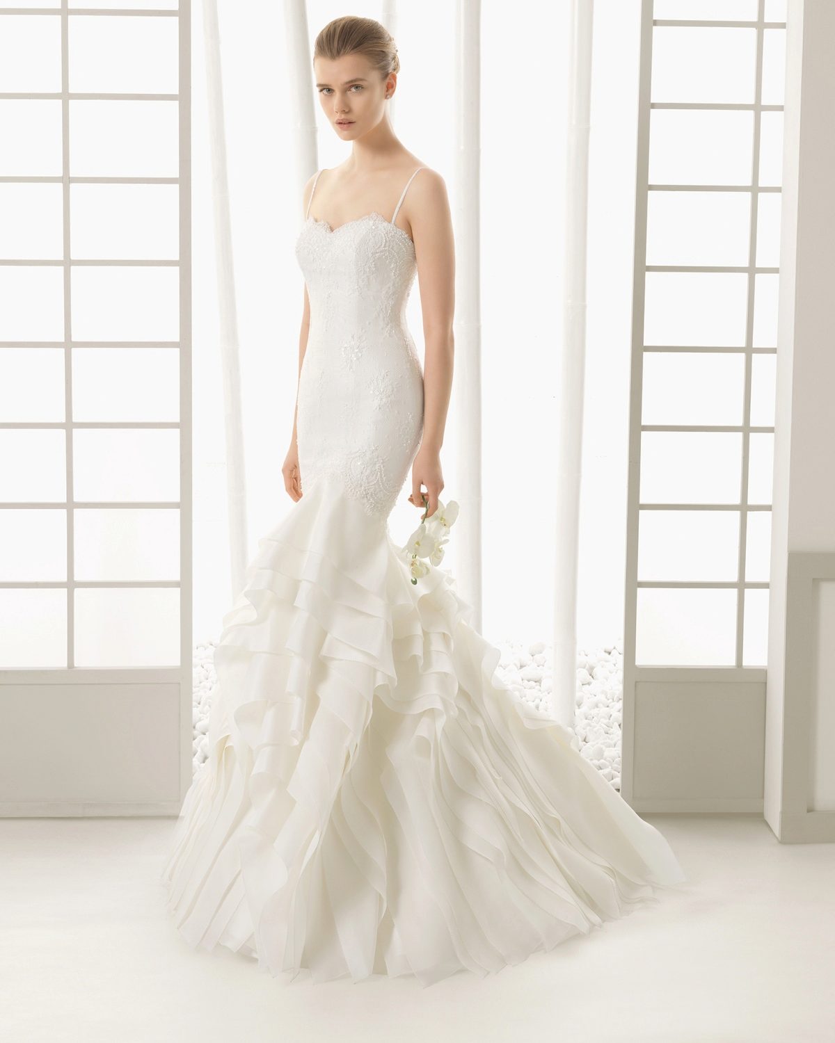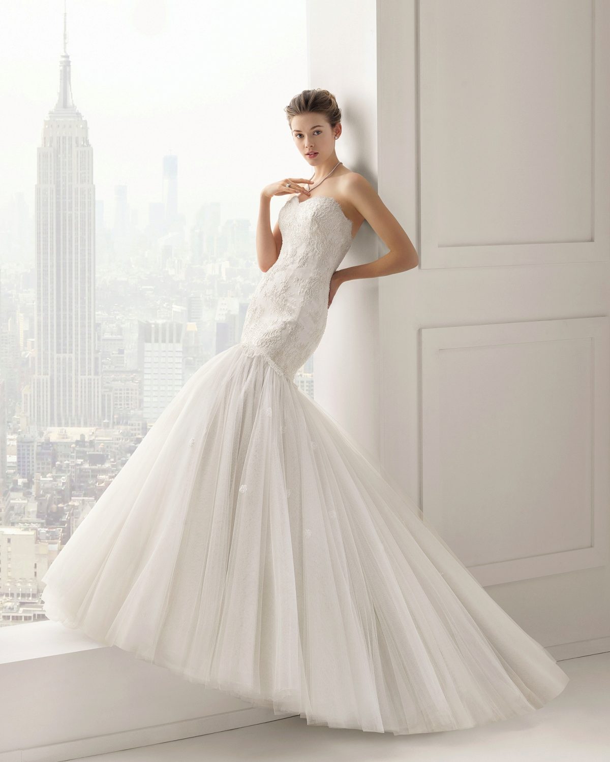 Collections from the company Rosa Clara are not forgotten, do not fade into the background and do not lose their relevance. The admirers of straight silhouettes and the Empire style still pay close attention to the 2014 collection.