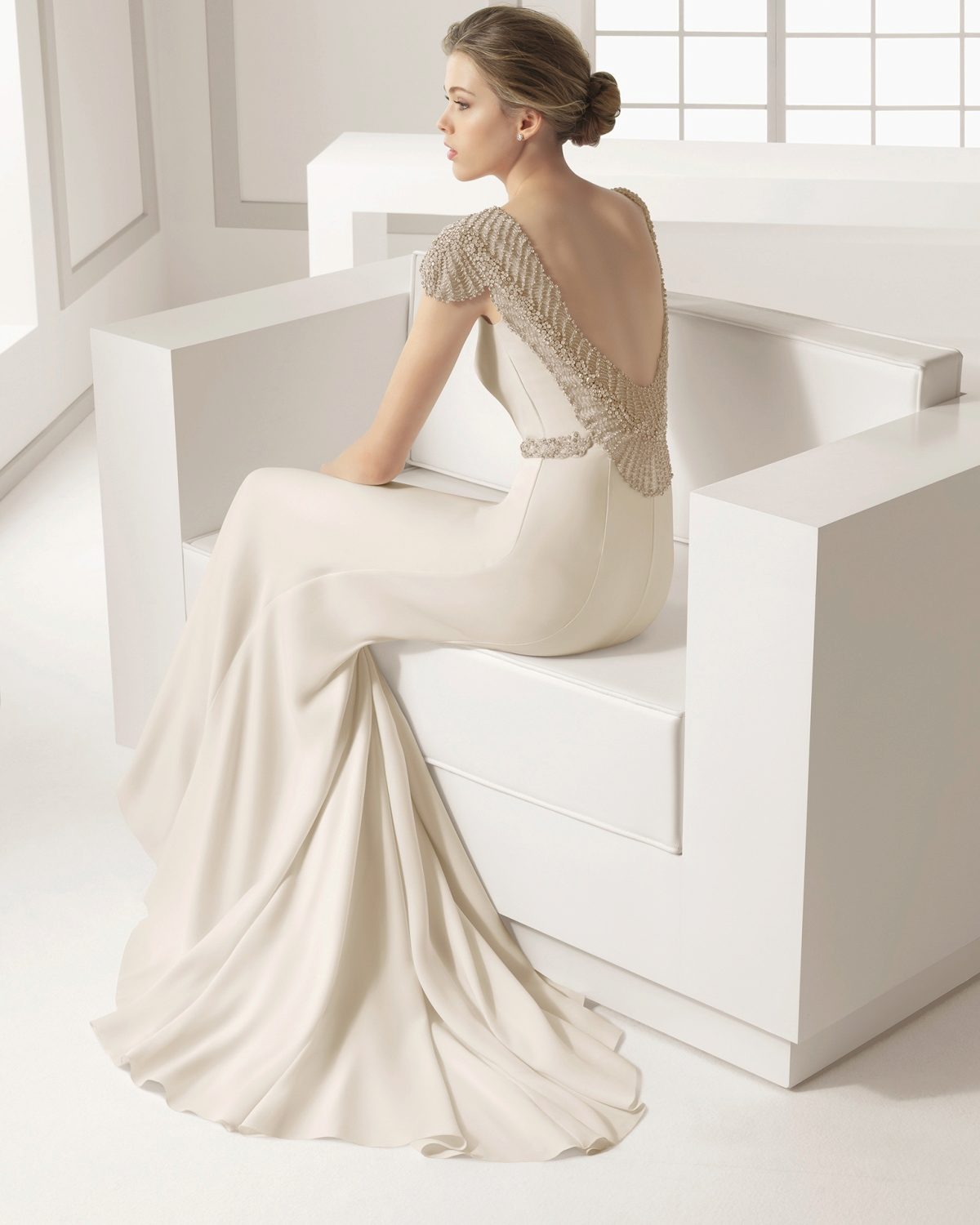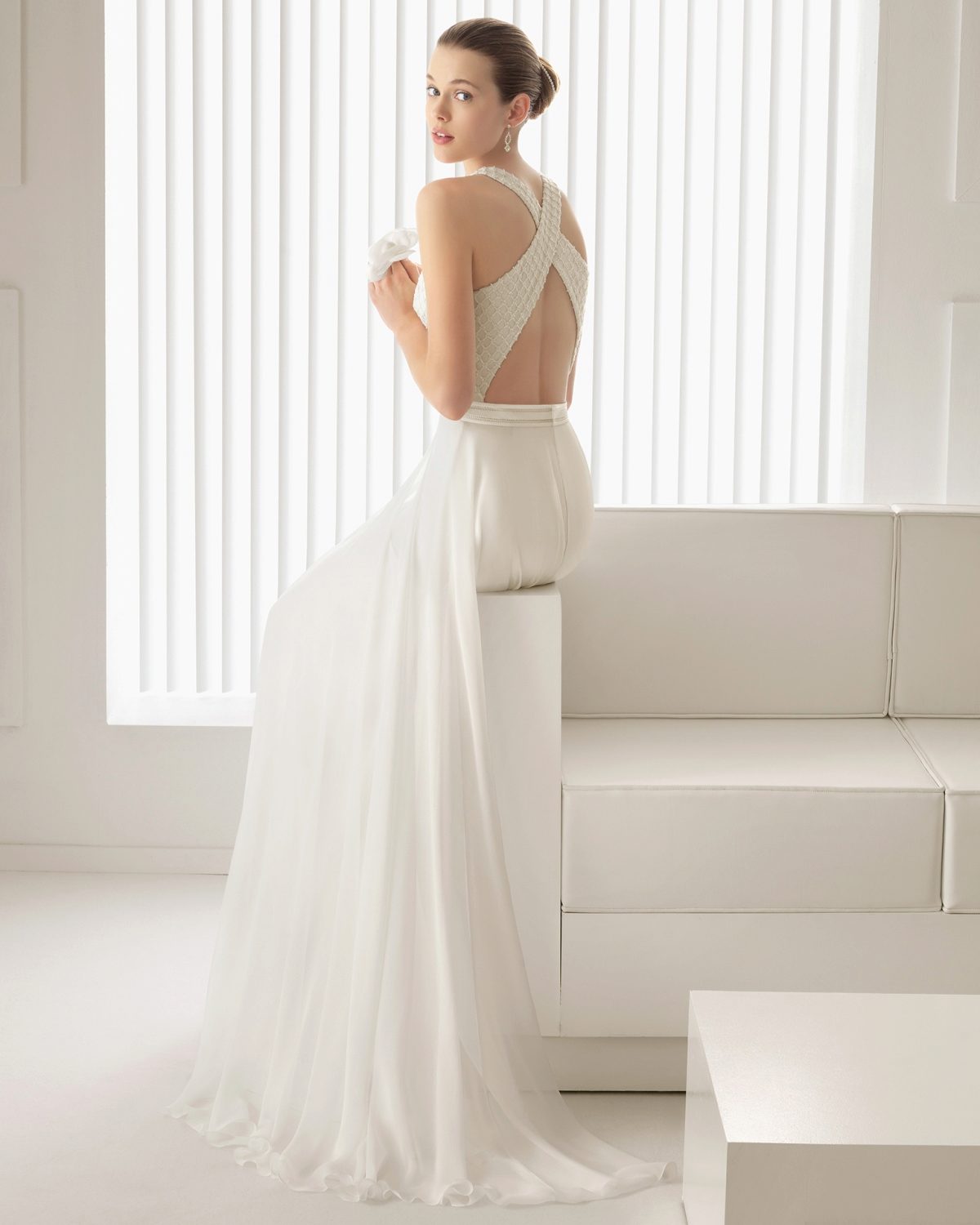 Even for the official ceremony, you can choose a dress with a cut on the back, which will be ahead more closed and strict. And even in the classics we managed to weave a neckline on the back, decorated with lace elements.