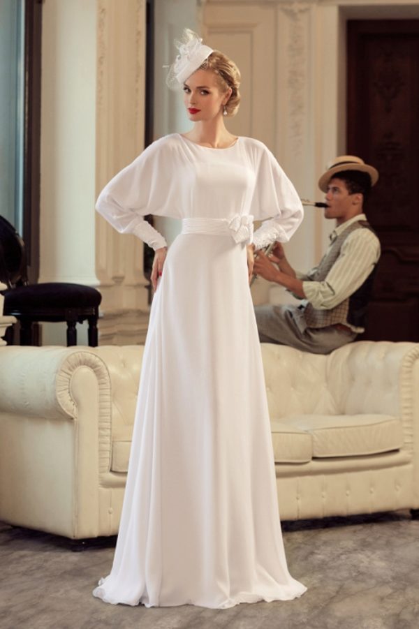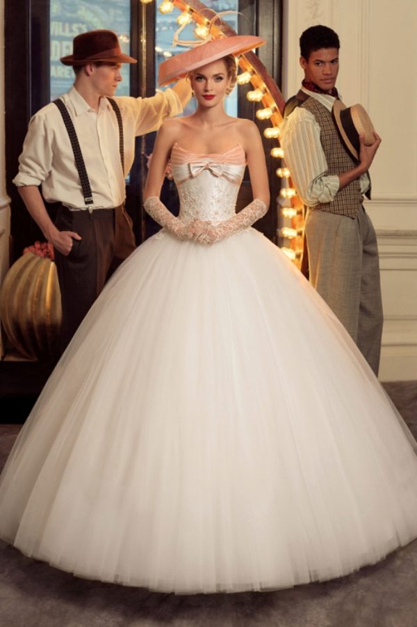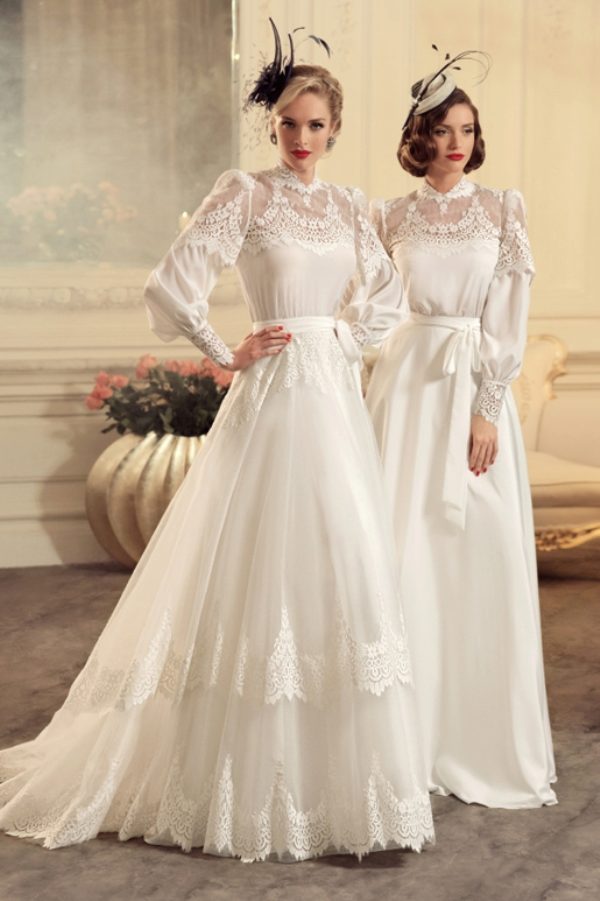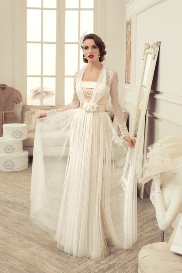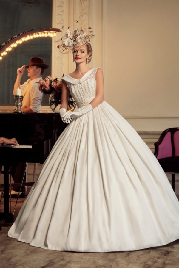 Ideally sustained style of the company and the exceptional diversity of silhouettes will satisfy any desire and every whim when choosing a wedding dress to create the desired image in retro style. This style covers a long period of time. Therefore, the collection has a lot of magnificent models with lace, with sleeves, with various types of neckline.