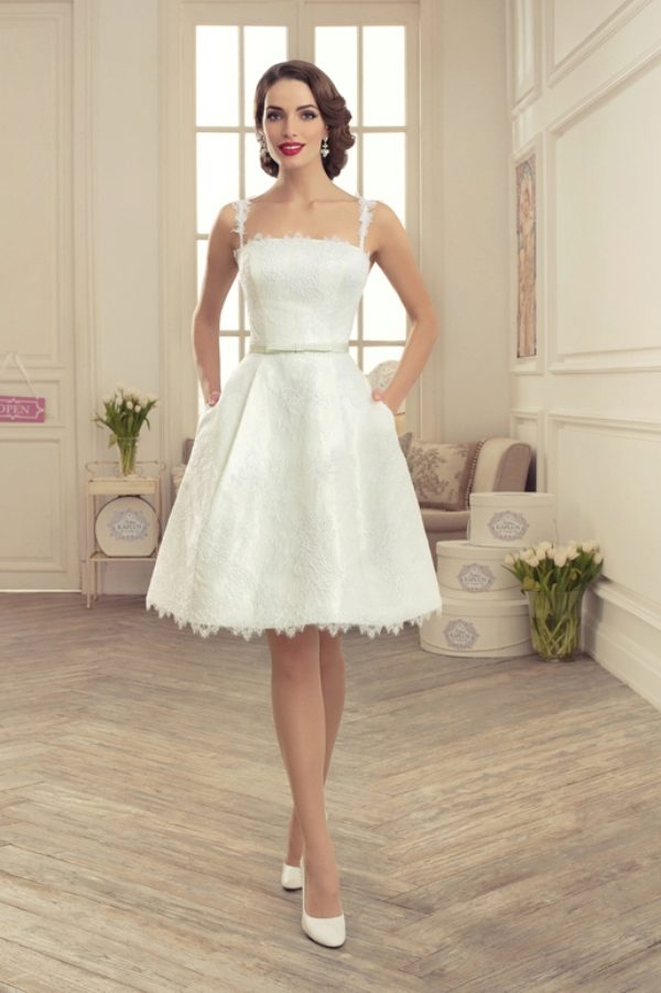 Brides with beautiful legs have a choice of several styles of short dresses.