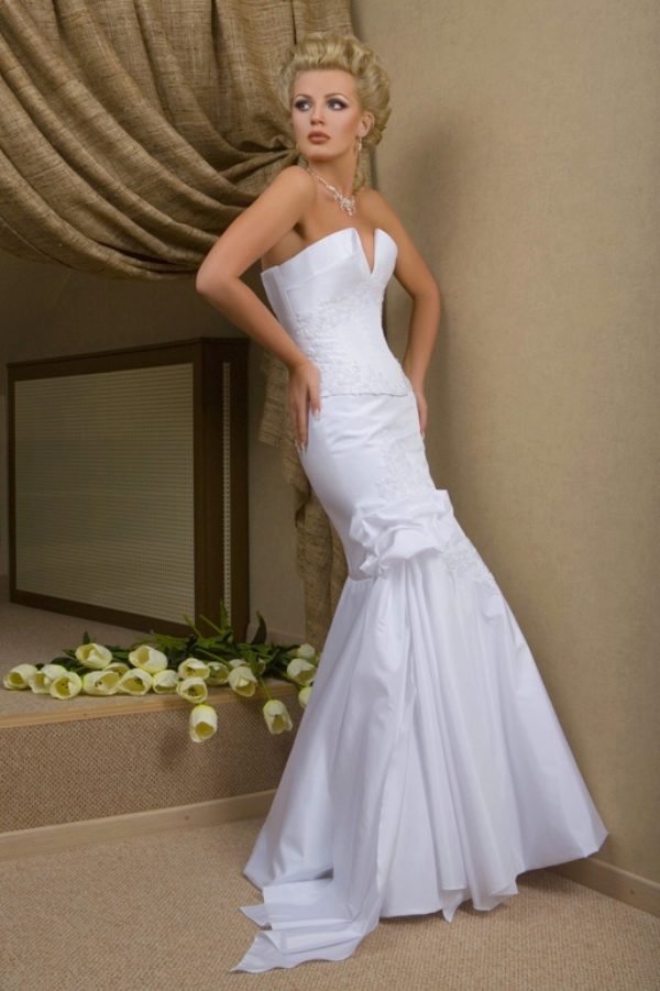 She is well aware of her beauty and is not afraid to put it on display, and even more so on her wedding day. The striking outfits are decorated and decorated with different images: an open bust, lacing, a mermaid silhouette only show the bride in her favorable light, reveal nature, emphasize dignity and express individuality.