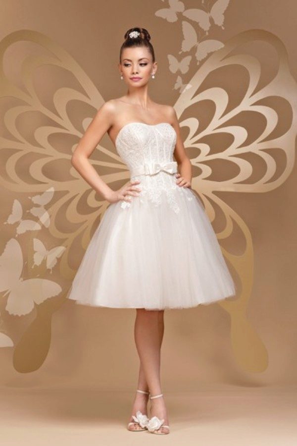 The 2014 collection, like the previous ones, was created for girls who keep up with the times. Wedding dresses with an unusual cut and translucent top, lace decor and short models occupied a special place in it.