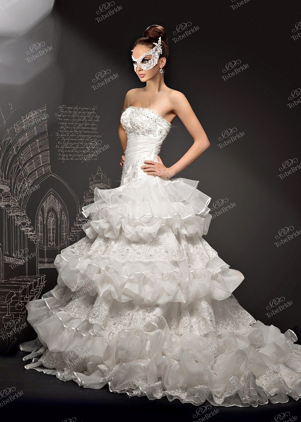 A rich selection and lush classic models to the floor. Original tiered skirts with a corset and decor in the form of a placer rhinestone, with an open back create a unique image.