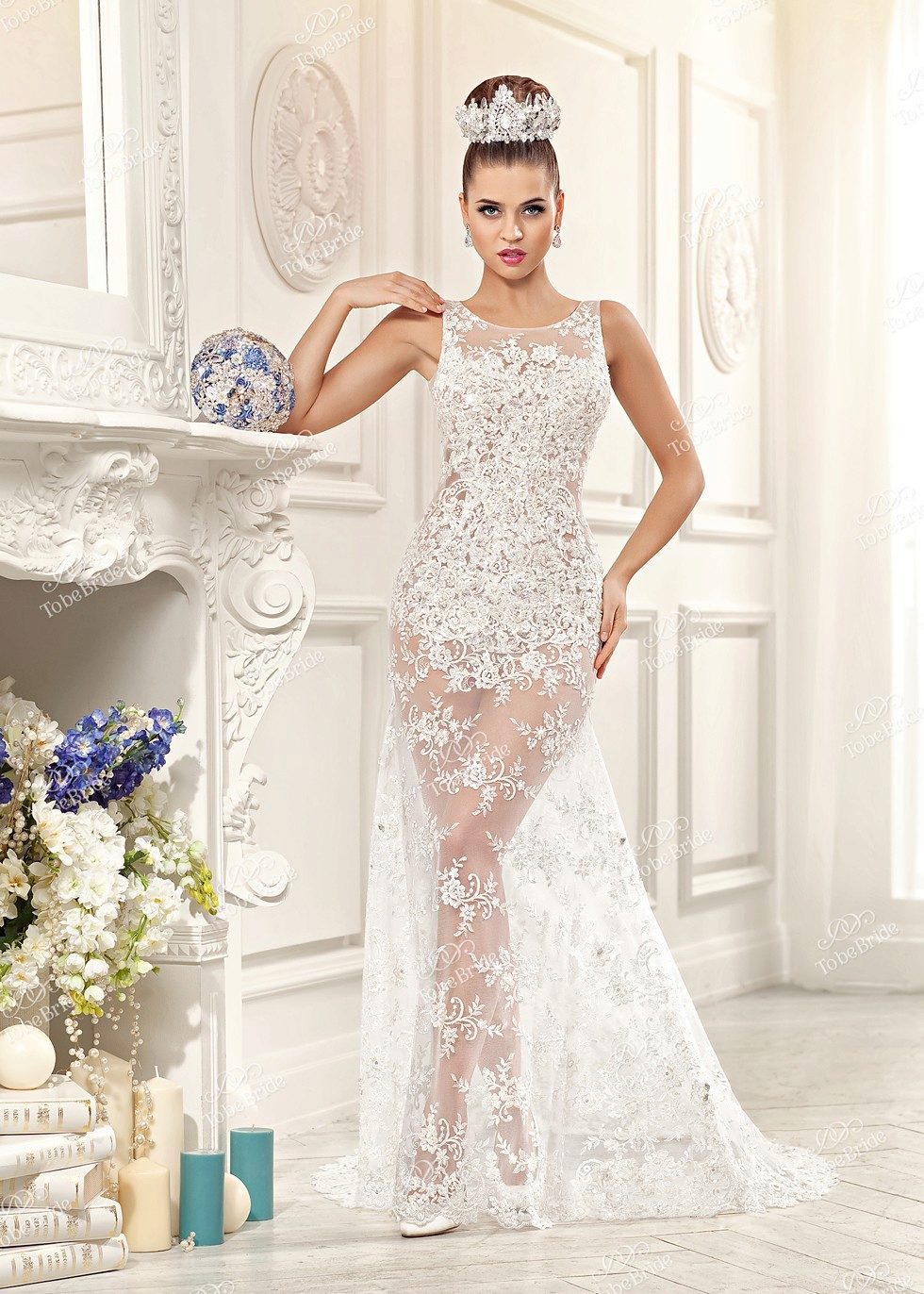 The 2015-2016 collection fulfills all fashionable laws and maintains the popularity of lace. Such wedding dresses look just amazing. By the way, the dress can be completely made of lace, or have some separate lace detail.