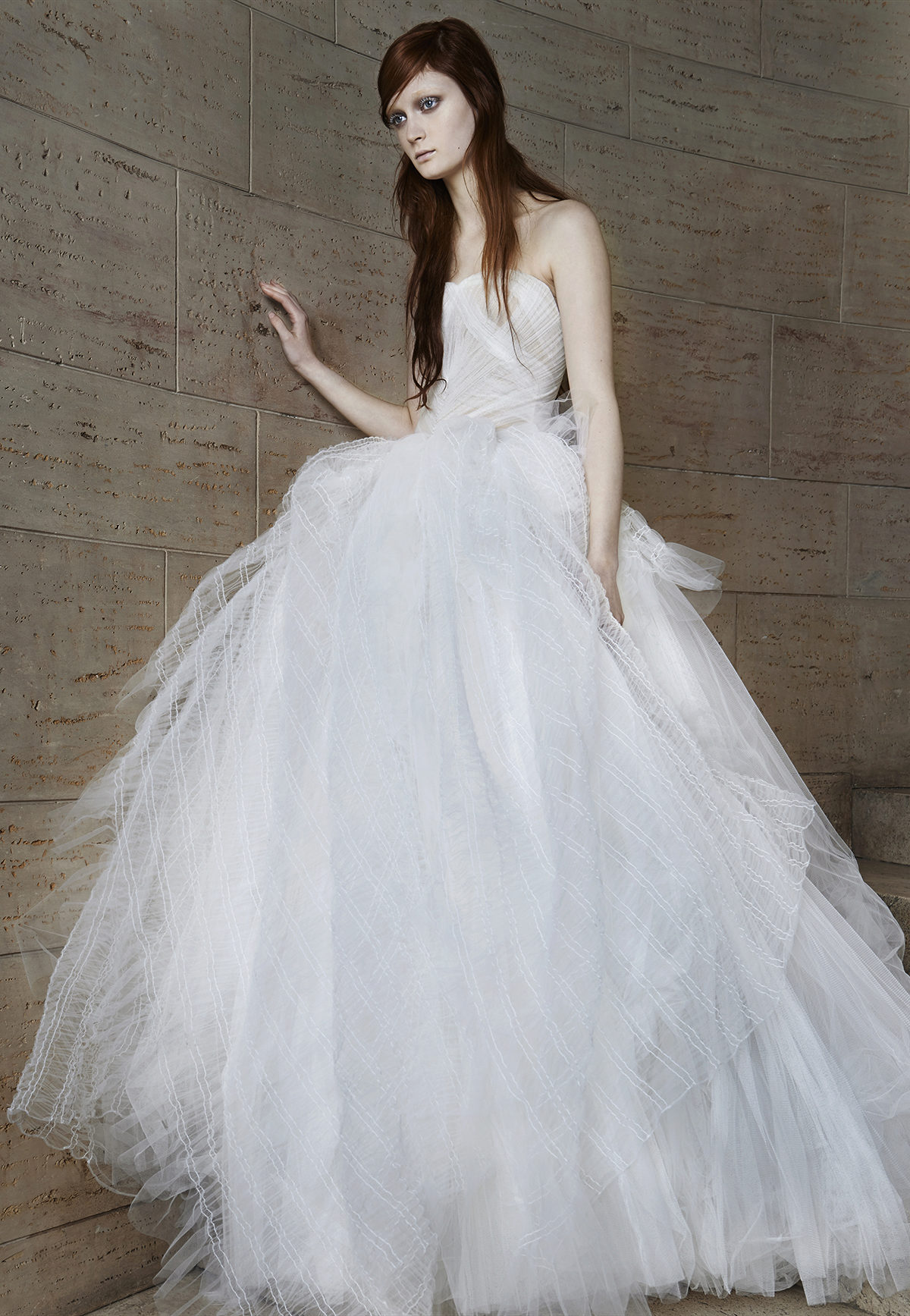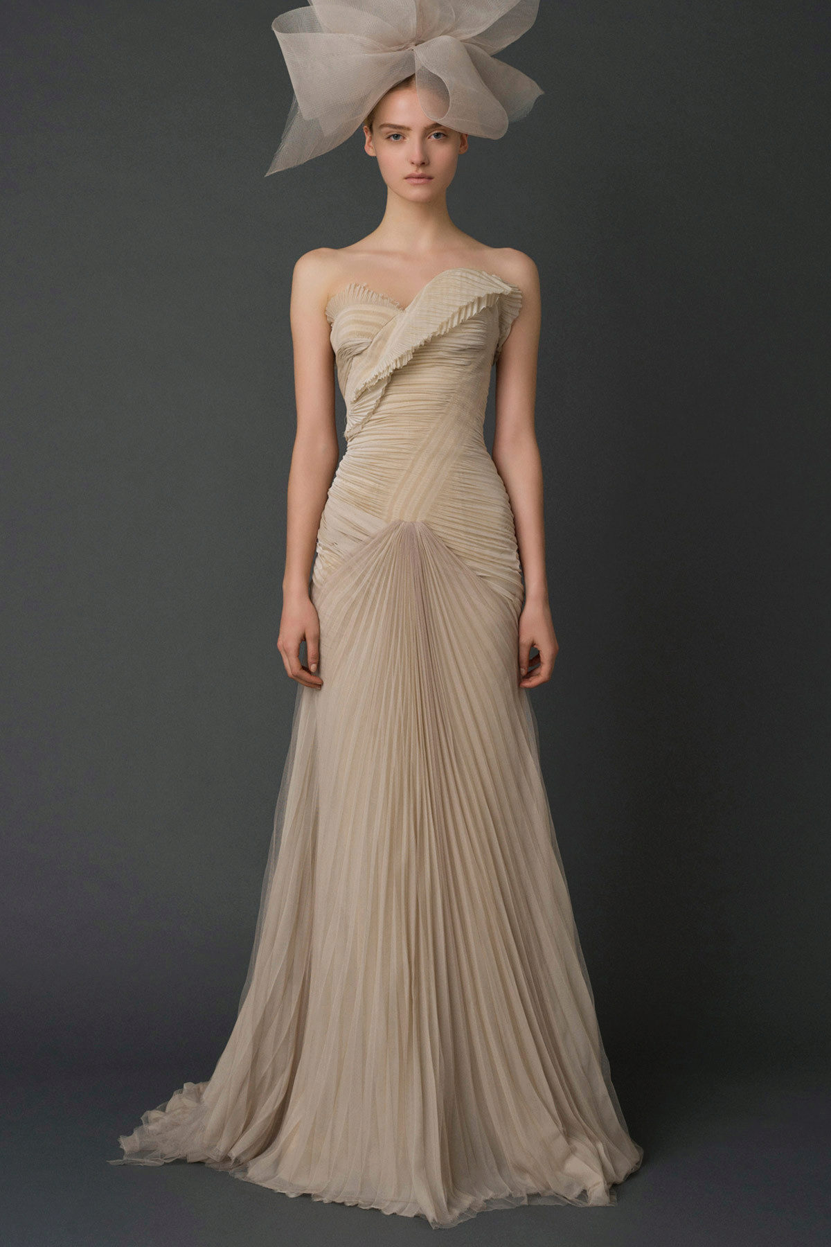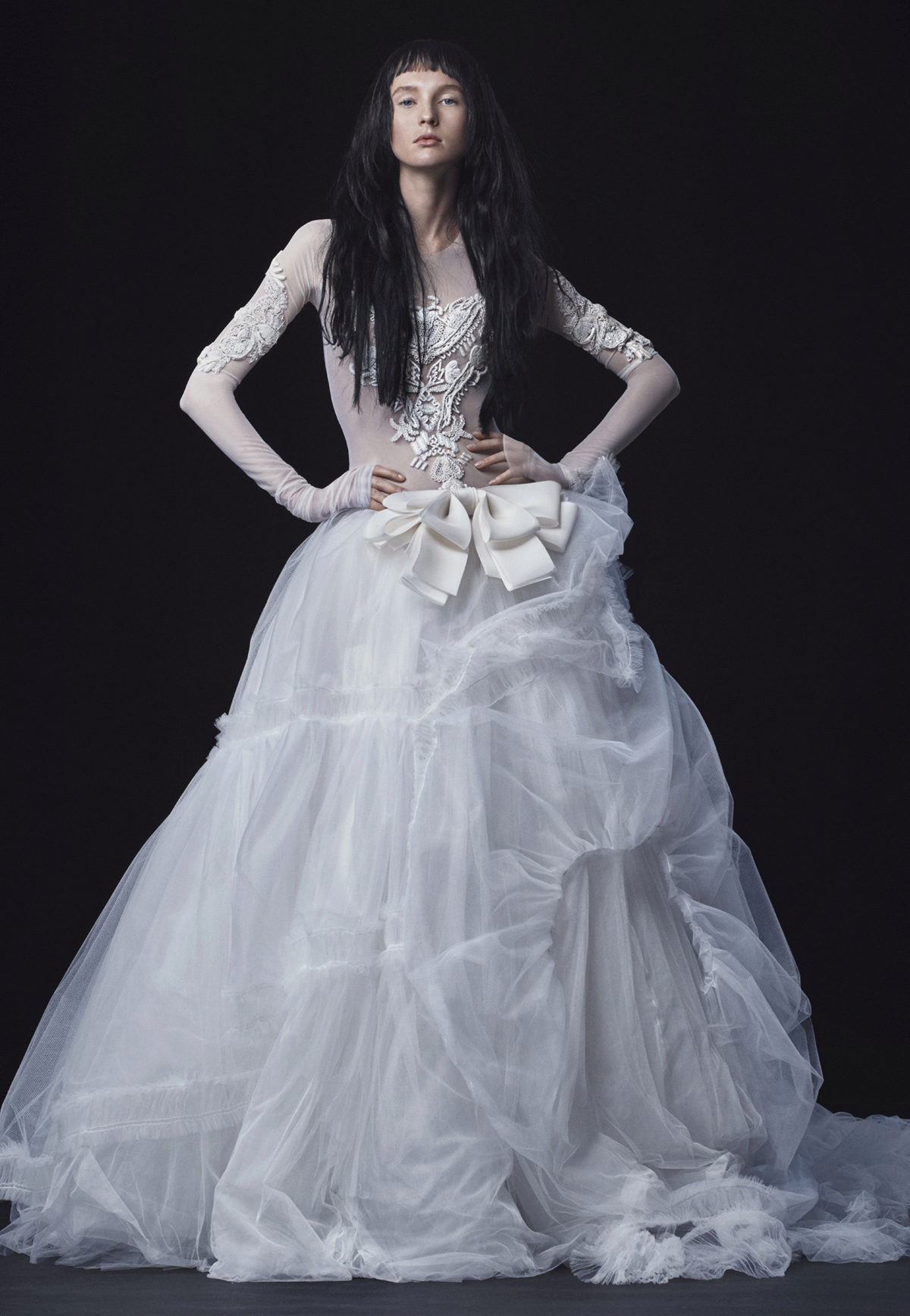 Vera Wong used flowing lines, delicate lace and white. This beauty is difficult to describe in words, it is better to see photos of models.