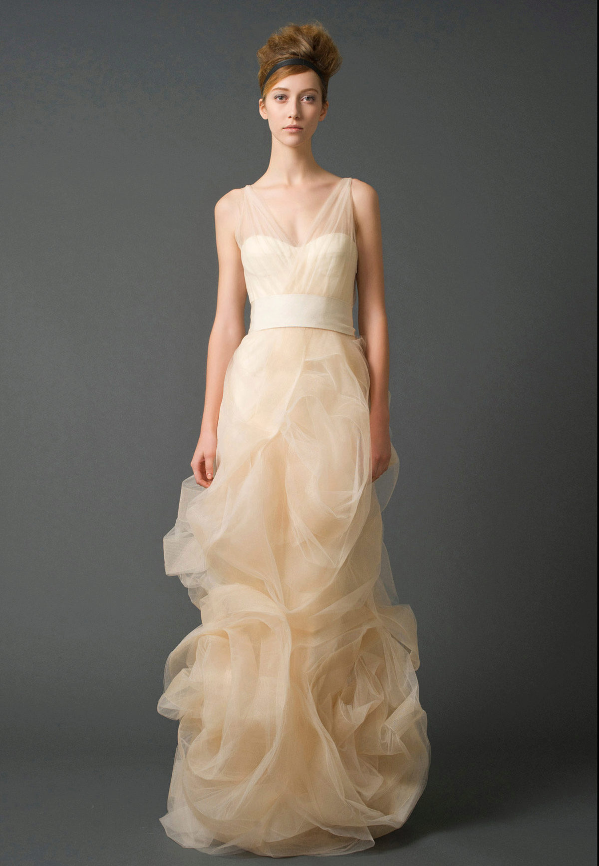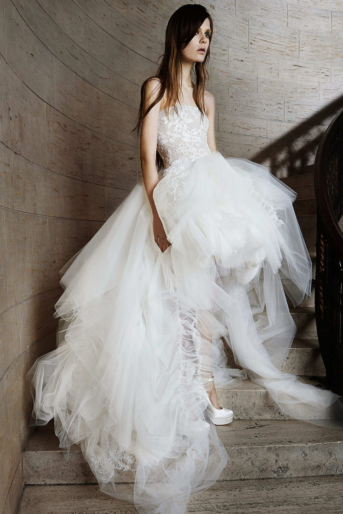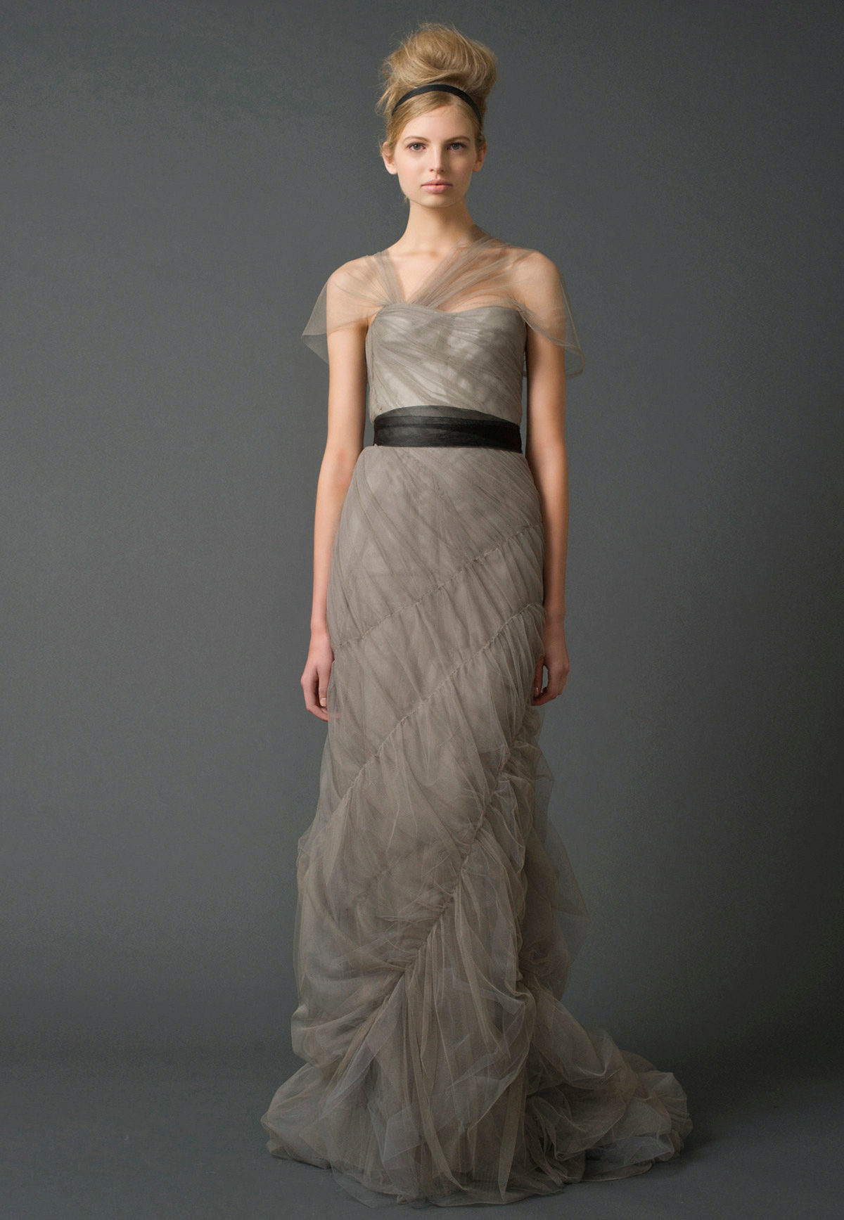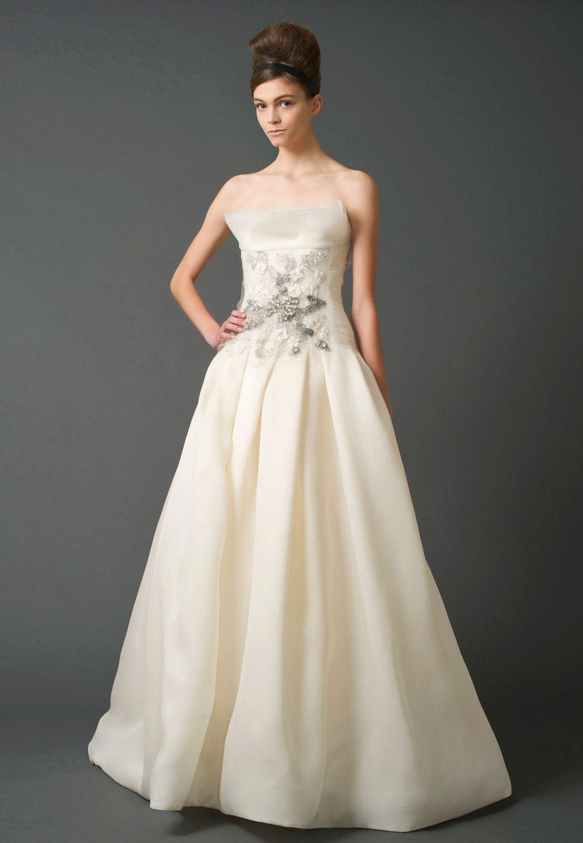 Vera Wong used flowing lines, delicate lace and white. This beauty is difficult to describe in words, it is better to see photos of models.