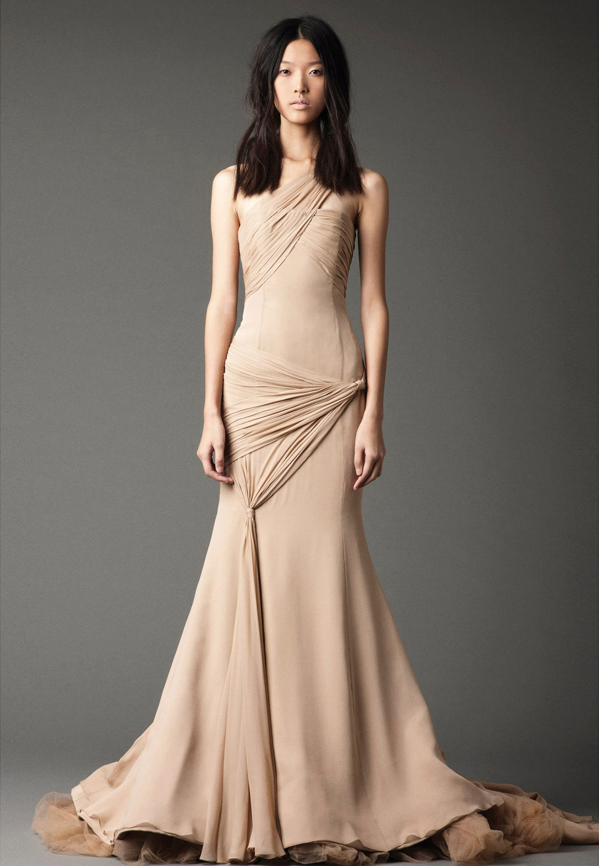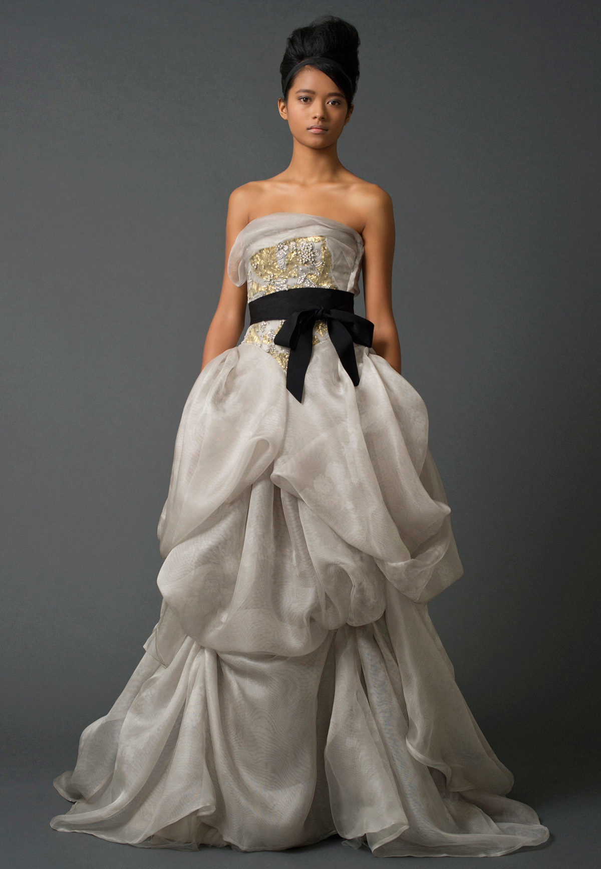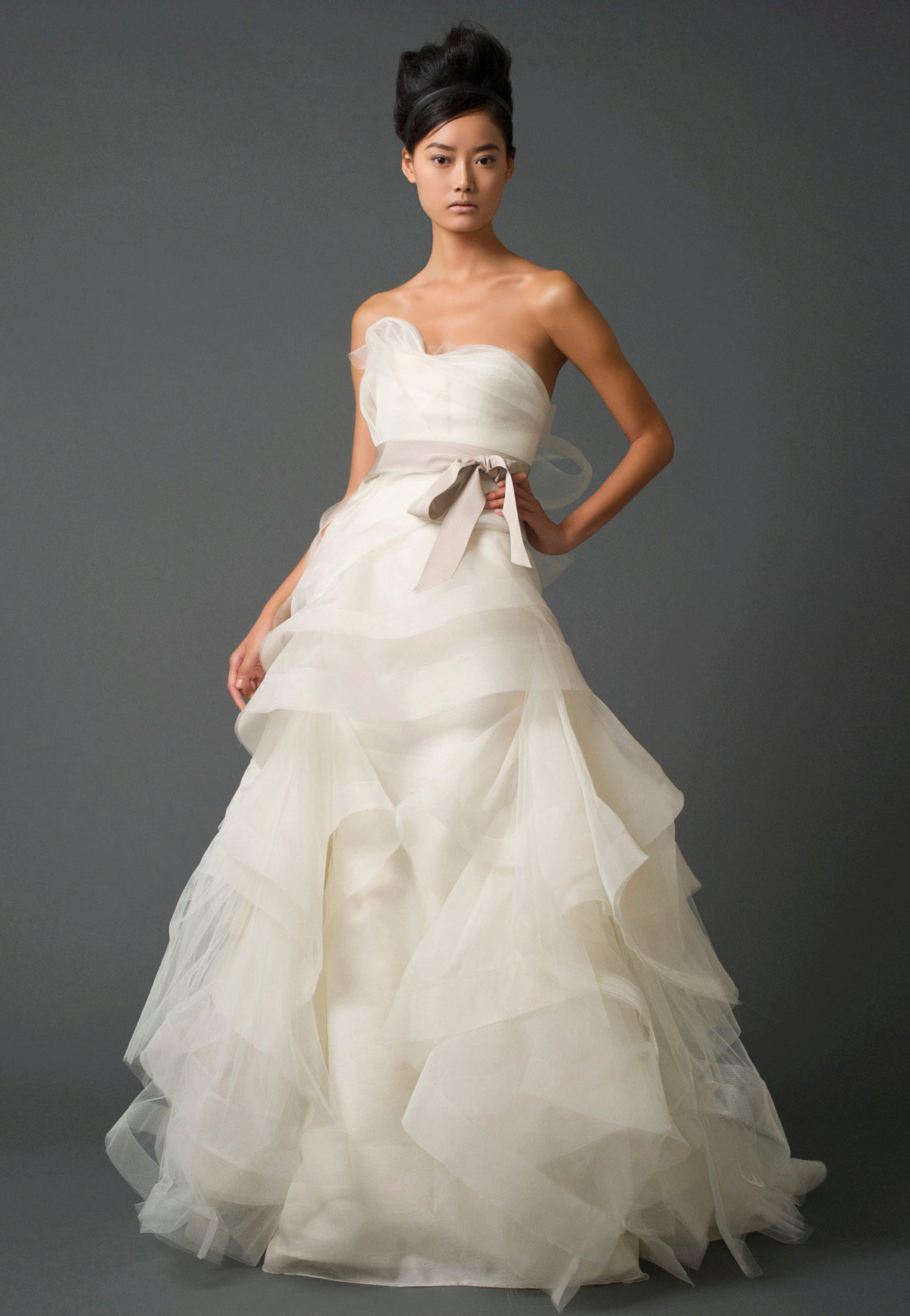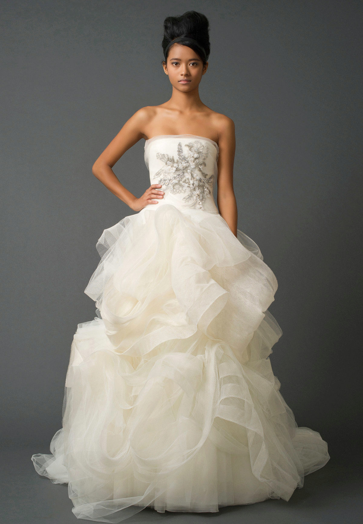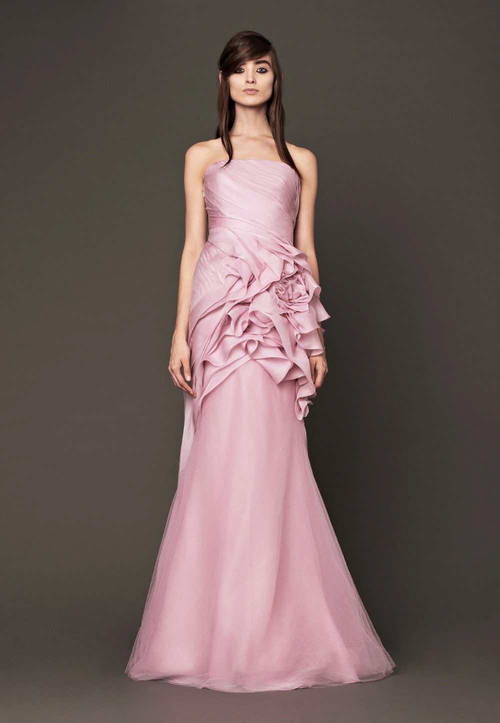 Vera Wong releases two collections each year. The spring-summer collection of 2011 is filled with feminine silhouettes, which were created with the help of small floral elements, volumetric details and individual petals. The used tulle and organza looked very harmonious in gentle images. The colors were varied: from white and all sorts of varieties of cream to silver and seductive purple.