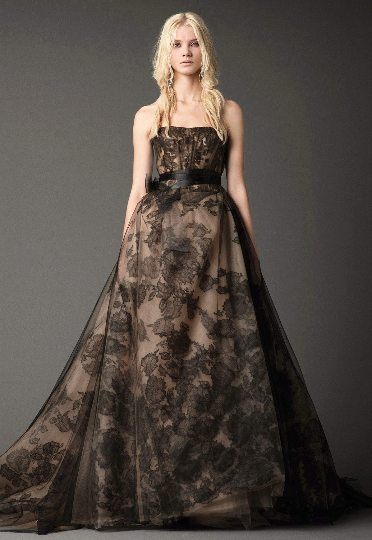 The second collection of 2012 became a real sensation in the world of wedding fashion, since the entire collection was devoted to black dresses. Long models in rich black color looked breathtakingly, unusual and individually. Diluted this range of dresses in nude shade.