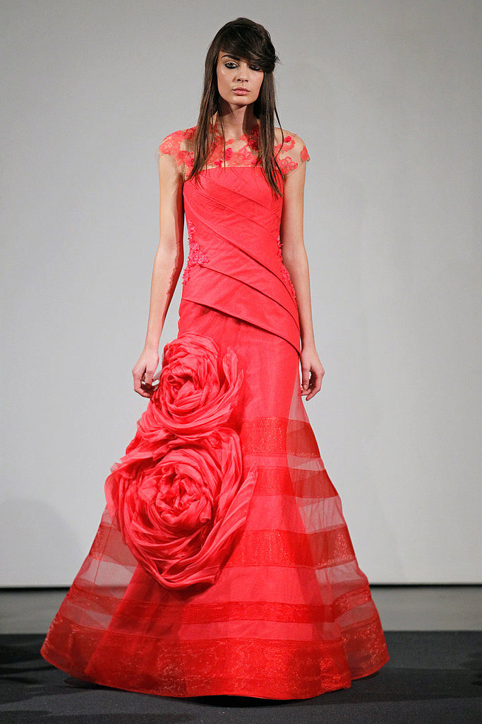 Spring 2013 with the help of Vera Wong was filled with passion, which was expressed in rich red tones. Decorated dresses shuttlecocks, unusual draperies and numerous ruffles.