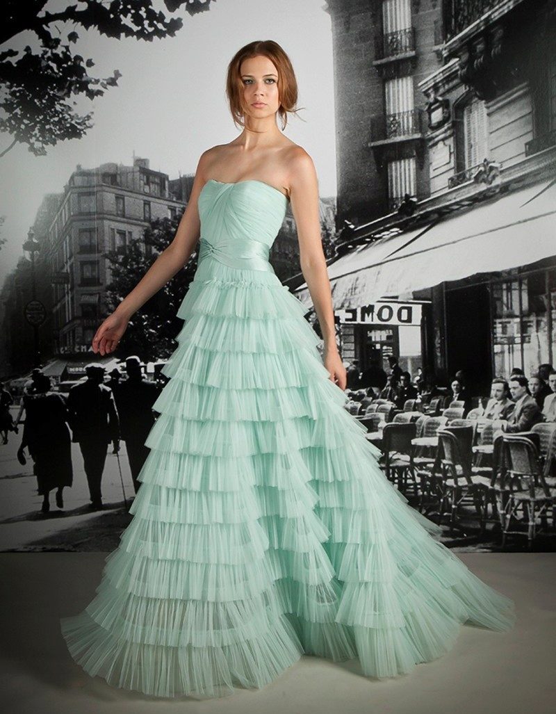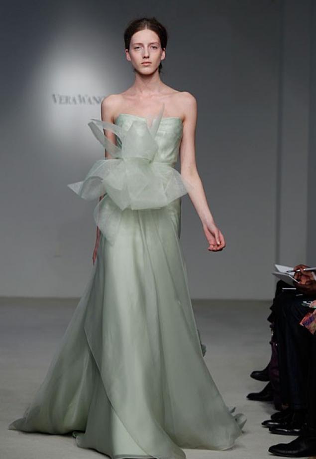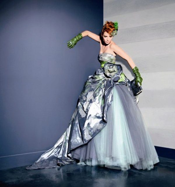 It is important to note how designers relate to pastel colors when creating wedding dresses. Using colors such as green, blue, silver, ivory, they focus solely on the shade, that is, mainly the cut is simple, classic. Baroque outfits are also very popular.