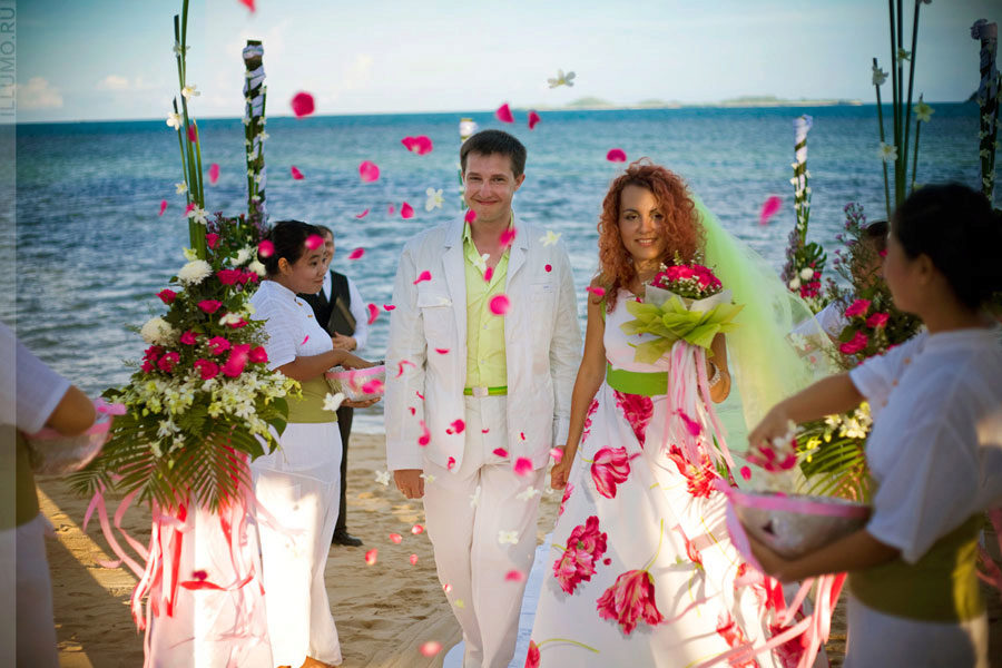 For example, pink, peach, turquoise and blue colors look gorgeous, but not like everyone else. And if you also organize a ceremony on the beach or in nature, then the original pastel shade will play a completely different colors, will create a unique image.