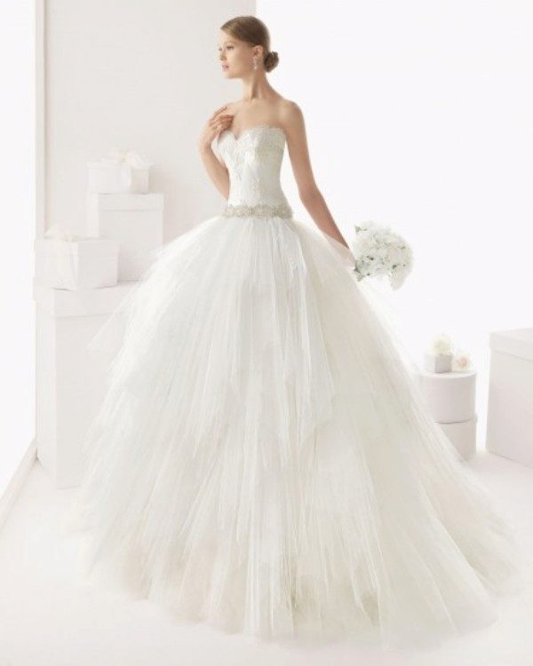 Dresses in the style of "princess" - this is a wonderful choice of ladies who adhere to English tastes. Delicately looks corset bodice, emphasizing beautiful hands, slim waist and harmonious figure. And thanks to the luxurious skirt you look like a real princess. Modest sleeves outfits look great. As the material for the decoration of the train and the bodice is usually used the thinnest lace. In this dress you will look aristocratic and expensive. Long hem with a train stresses slim hips. The applied fabrics help him with this - chiffon or silk. Many models use the effect of applying multiple layers and the complexity of the cut. Upper skirts are sewn from tulle, tulle or lace. Due to the combination of fabrics creates the effect of airiness.