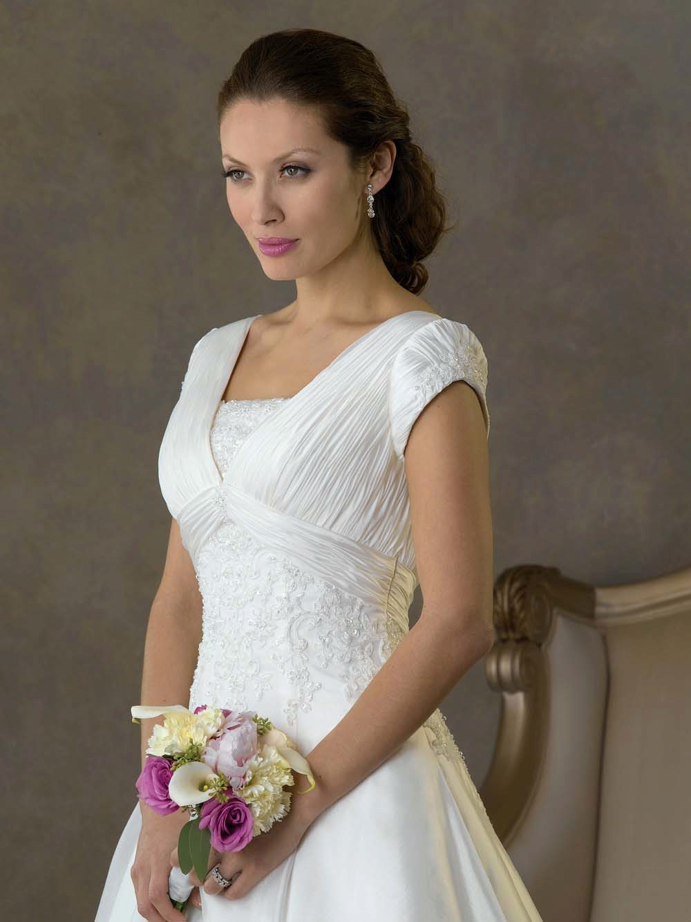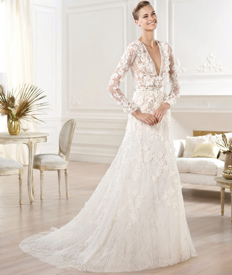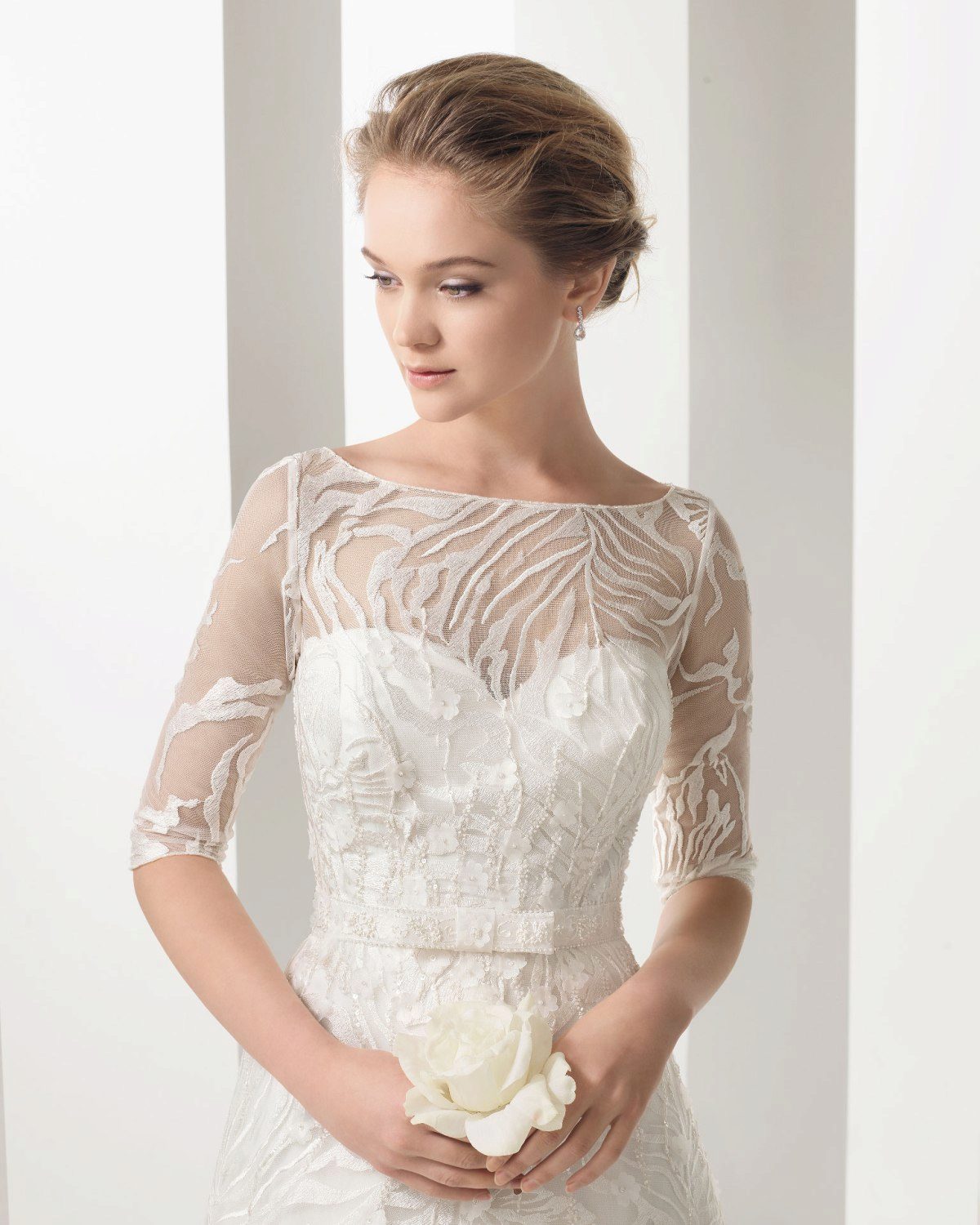 A great choice for a winter celebration. If your wedding is scheduled for the summer, then it is better to look at the dresses with lace sleeves or mesh. A long-sleeved coat is also perfect for modest brides or weddings, since they can be worn without a bolero or a cape.
