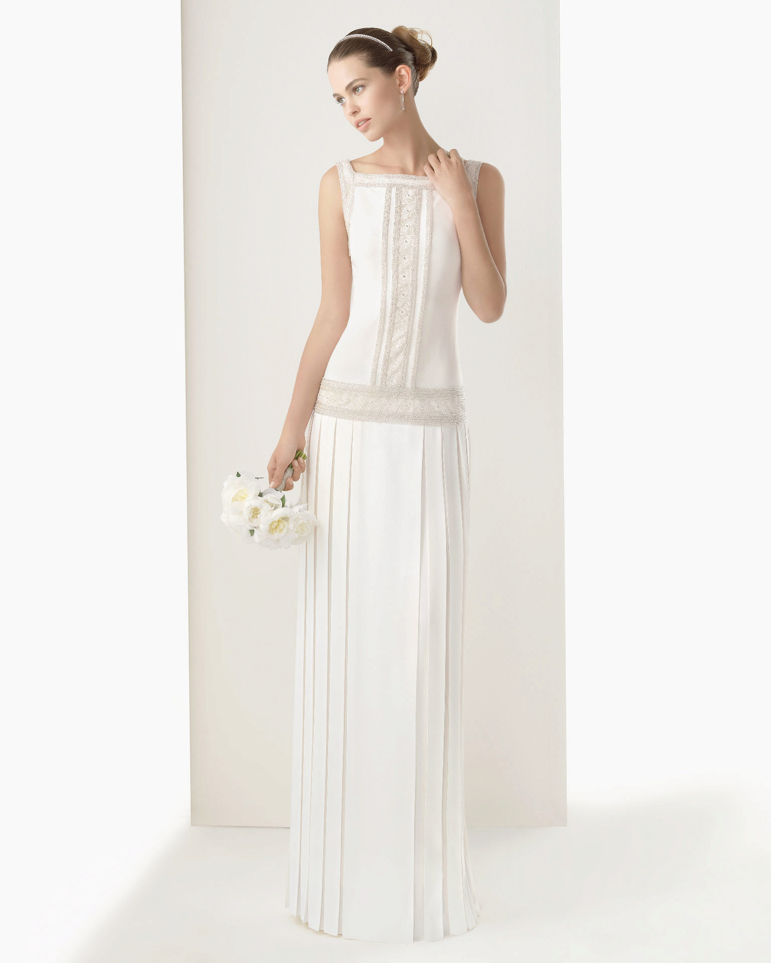 - A-silhouette. This style of long dresses is classic and has one important advantage - the A-silhouette is suitable for brides with a figure of any type. He also wonderfully hides problem areas.