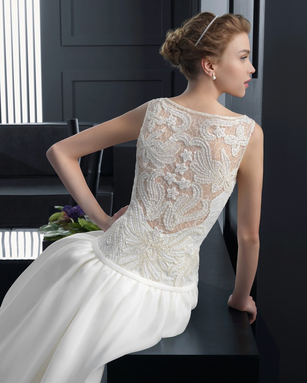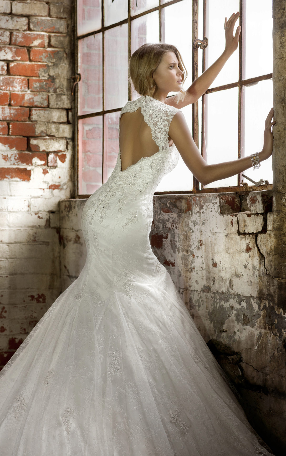 Wedding salons and shops offer styles of dresses with an open back, a variety of options. For example, a dress with a back partly or completely open and with a diverse cutout shape: classical as well as rectangular, triangular, trapezoidal, oval, asymmetric, double shape, in the shape of a heart, a droplet or a rhombus. As a decor backs can serve as satin ribbons and bows, crystals and bugles, buttons and lacing, exquisite lace and lace embroidery.