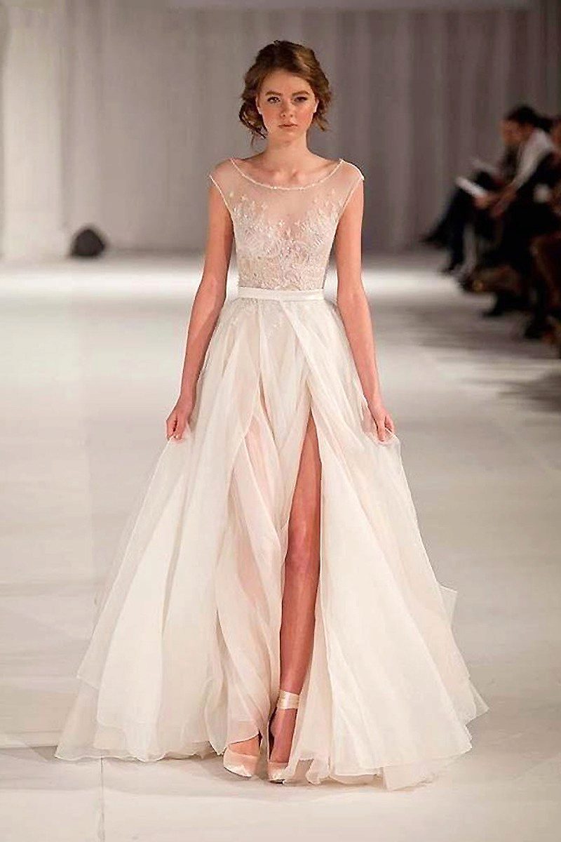 No bride can remain indifferent (and is it worth it?) In front of an unusual and bold combination of fabrics and textural elements, a decoration expressed in decorative details. If the dress consists of one type of fabric, elegant decoration is necessarily present, but there are also models in which the combination of fabrics is on a crazy level. However, it looks great.