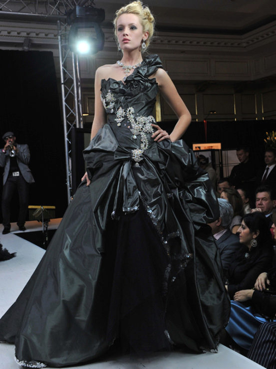 Often the collection plays the main role black and white colors. But with classic colors, the styles themselves are unusual.In wedding dresses as a supplement are high black gloves, as well as inserts resembling a safety belt.