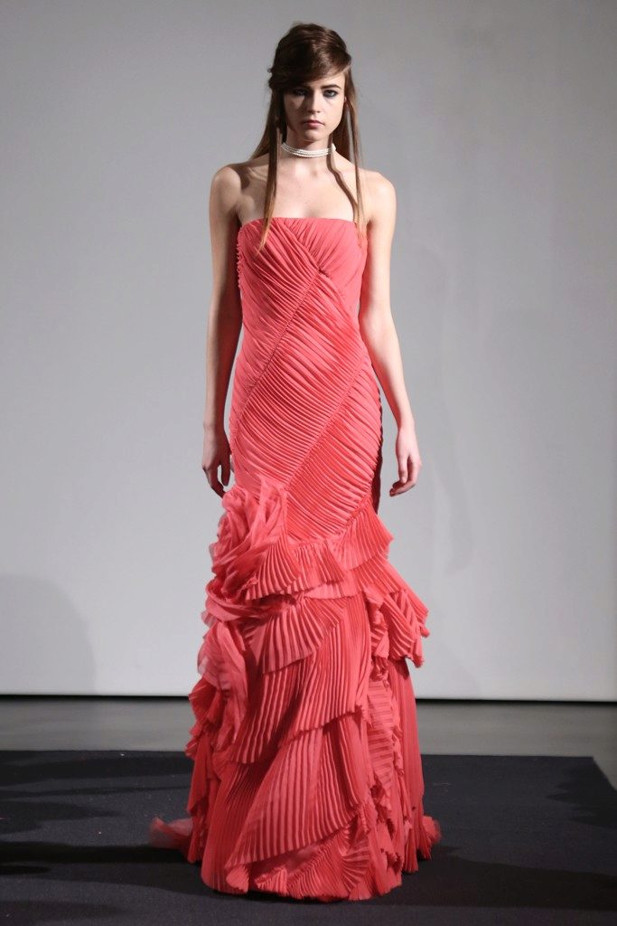 One of the collections is filled with dresses of the color of passion - red, decorated with all sorts of flounces, draperies, ruffles. The unusual color of styles, most likely, was a continuation of fashionable dresses from the collection of last season.