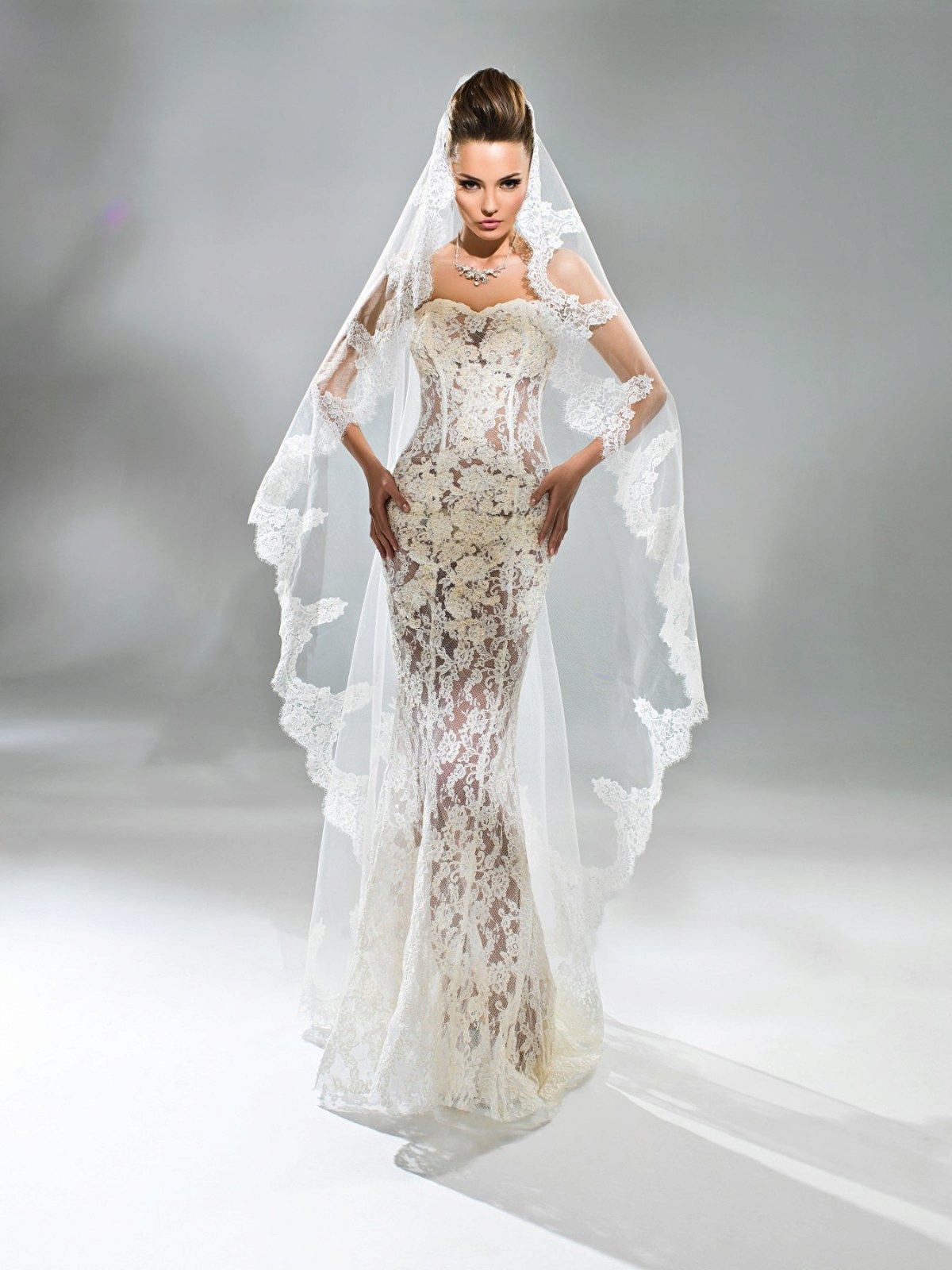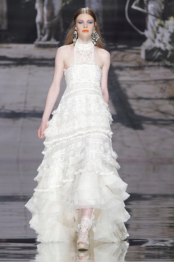 Well, in the latest collection of wedding dresses are presented in the style of decadence and gothic. Leading were white color, thin lace and flowing lines.