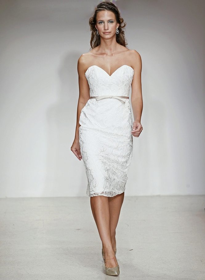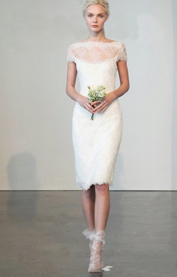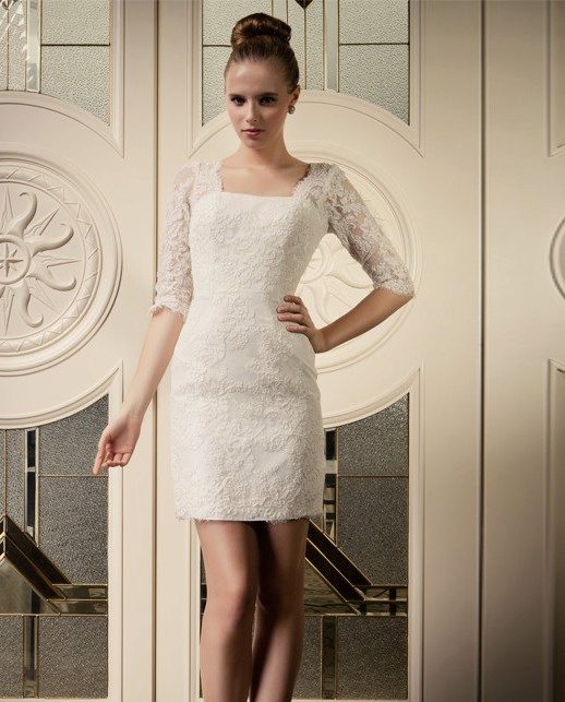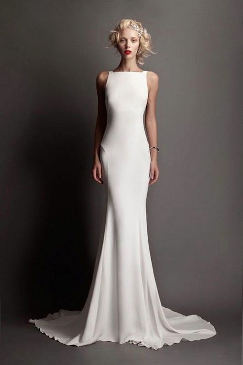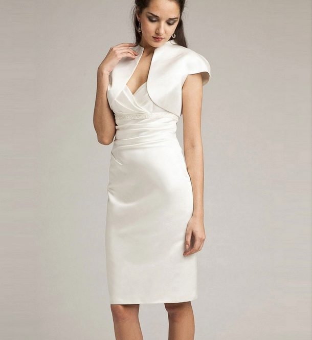 It seems to me, especially the sheath dress is suitable for those who marry a second time or more. Pompousness is out of place.