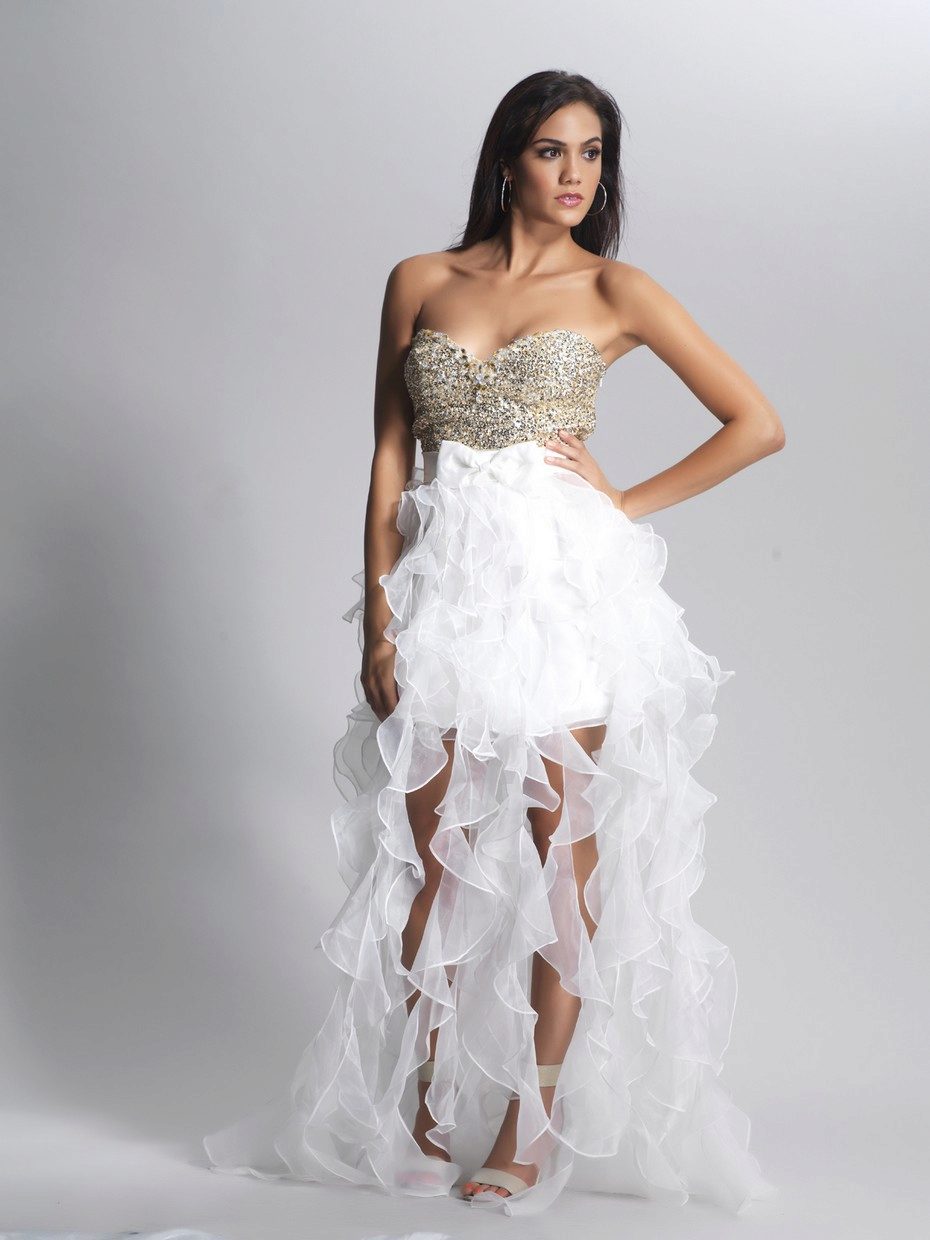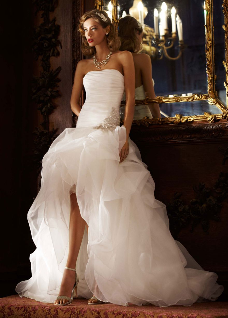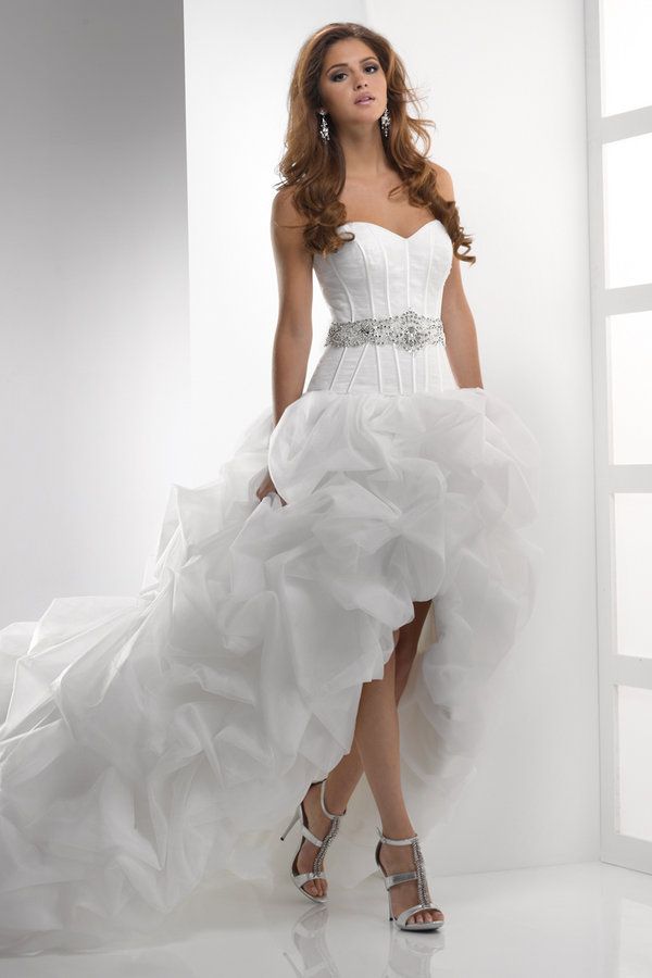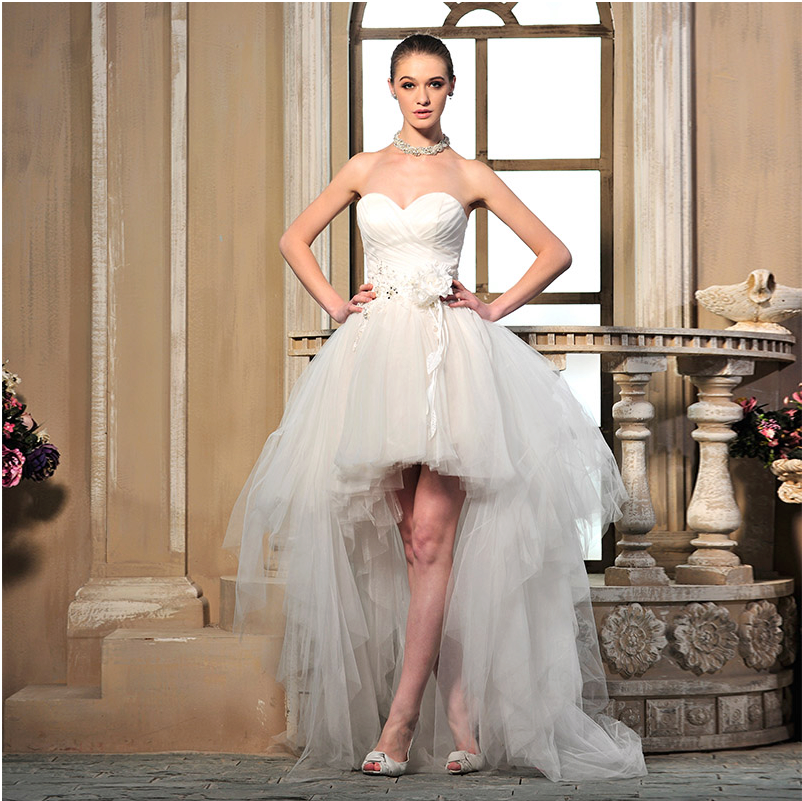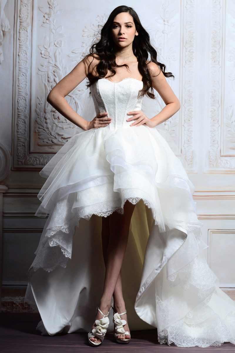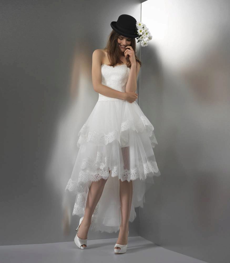 Fantasy designers provide brides with an ever-increasing selection of short high-low dresses with a wide variety of tailoring patterns. But there are only two types of dresses with a train: one piece and one detachable, which can easily transform a dress into an elegant short one, if you unfasten it.