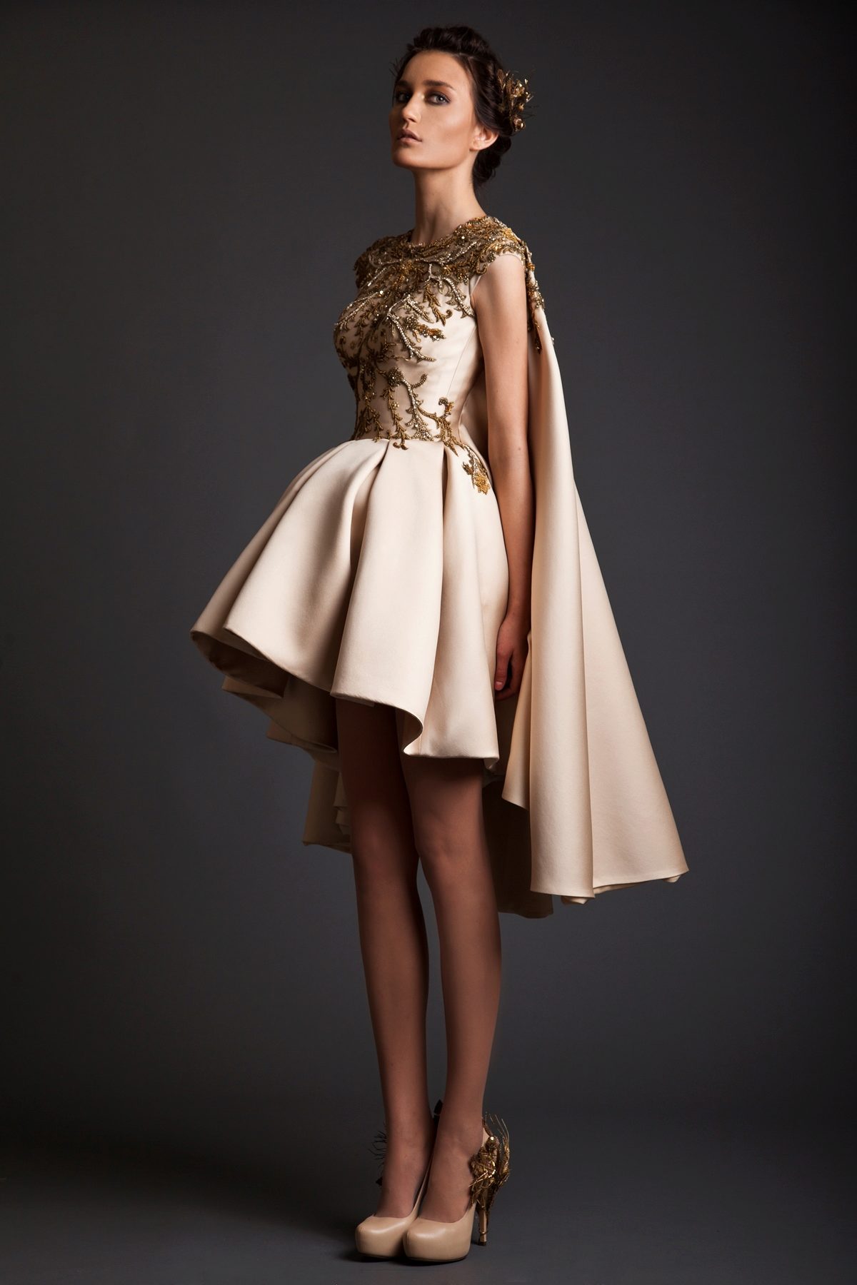 Exceptional design short outfits with a train can be ordered in the studio. Tailoring may take several weeks, but such a dress will not have competitors and it will be unique.