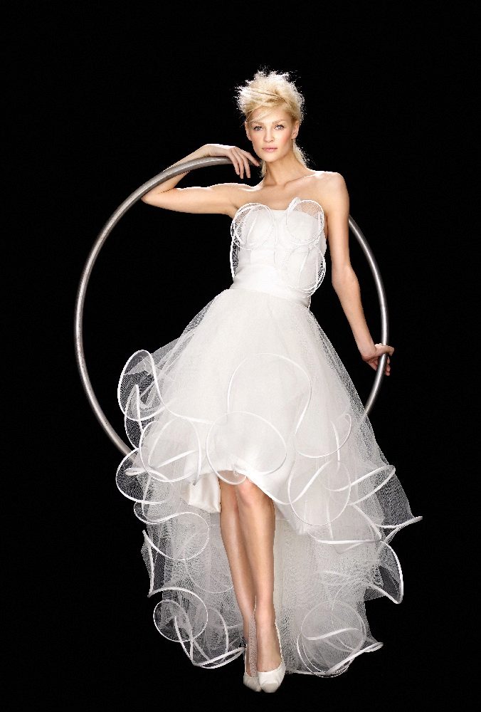 - The third criterion is riskiness. The asymmetry of the dress is a rather risky idea, and you need to be a self-confident bride to afford such a look.