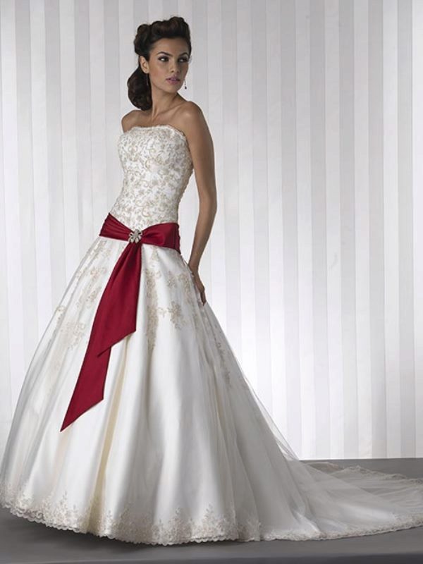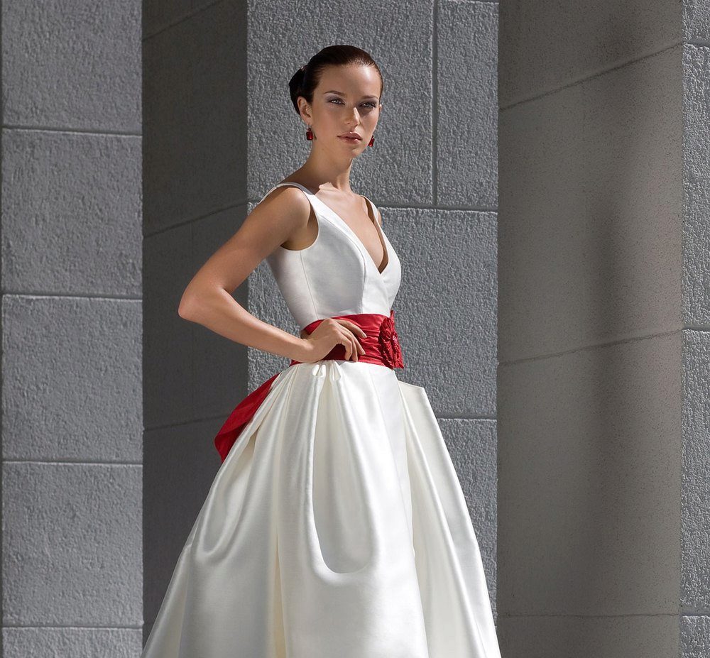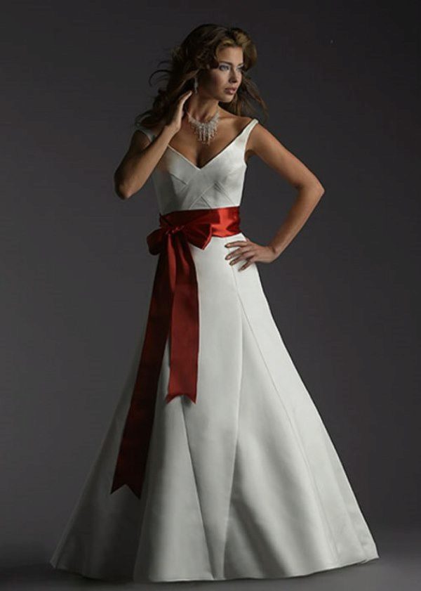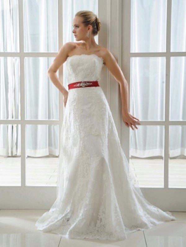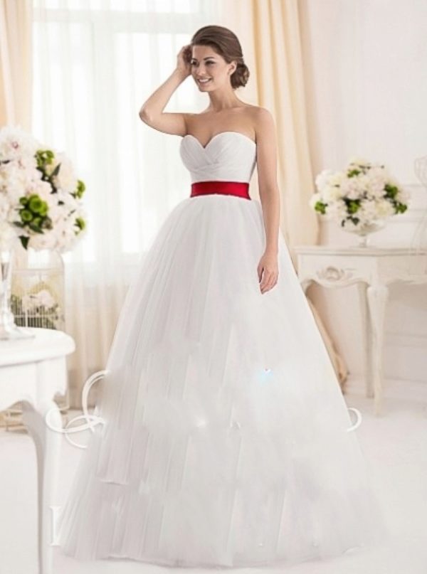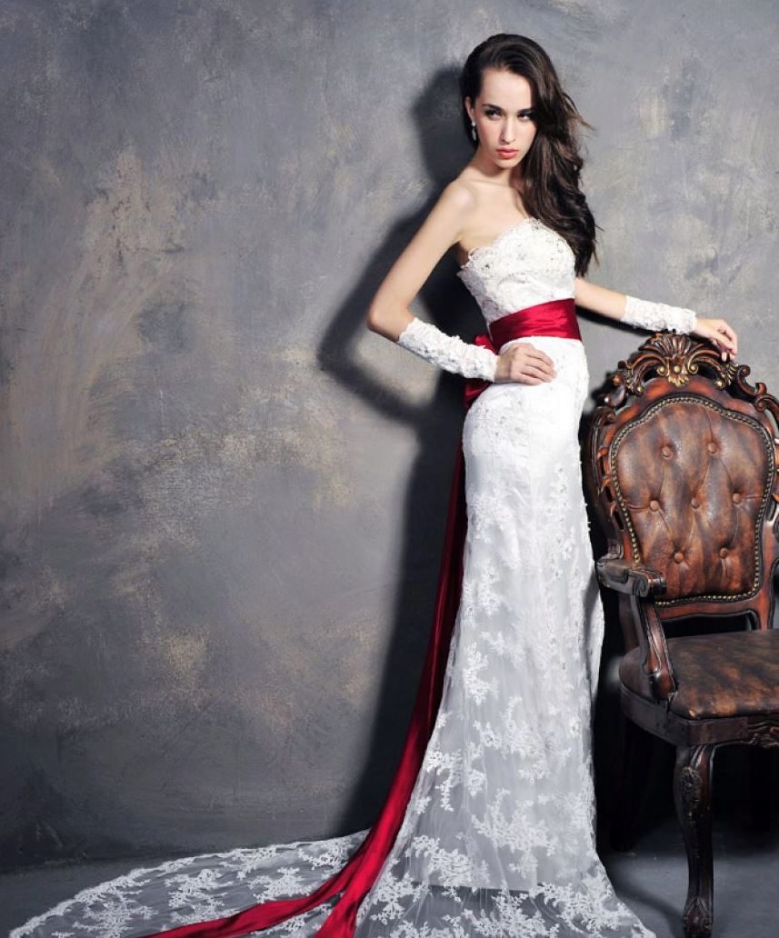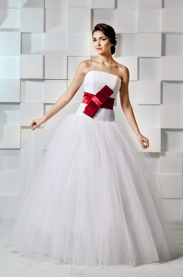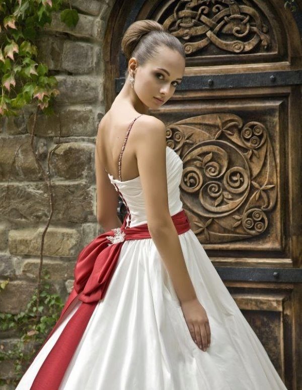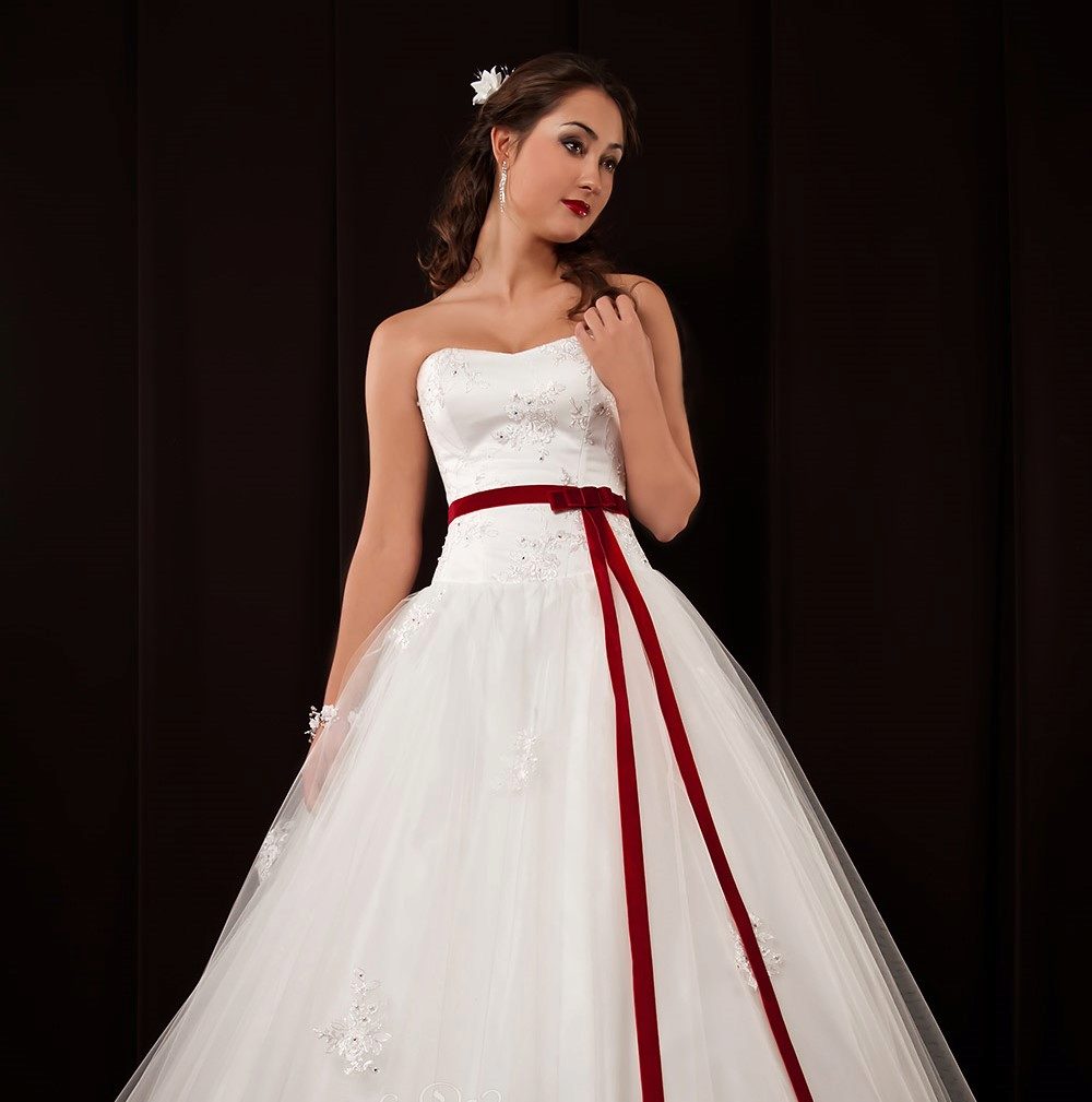 Wedding dress with a red belt - we place spectacular accents